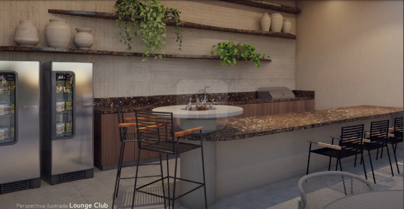 Varanda gourmet com kit churrasqueira adquirido separadamente. Kit: bancada, cuba, metal e churrasqueira à carvão ou à gás.