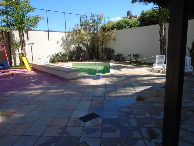 Área de lazer com piscina.