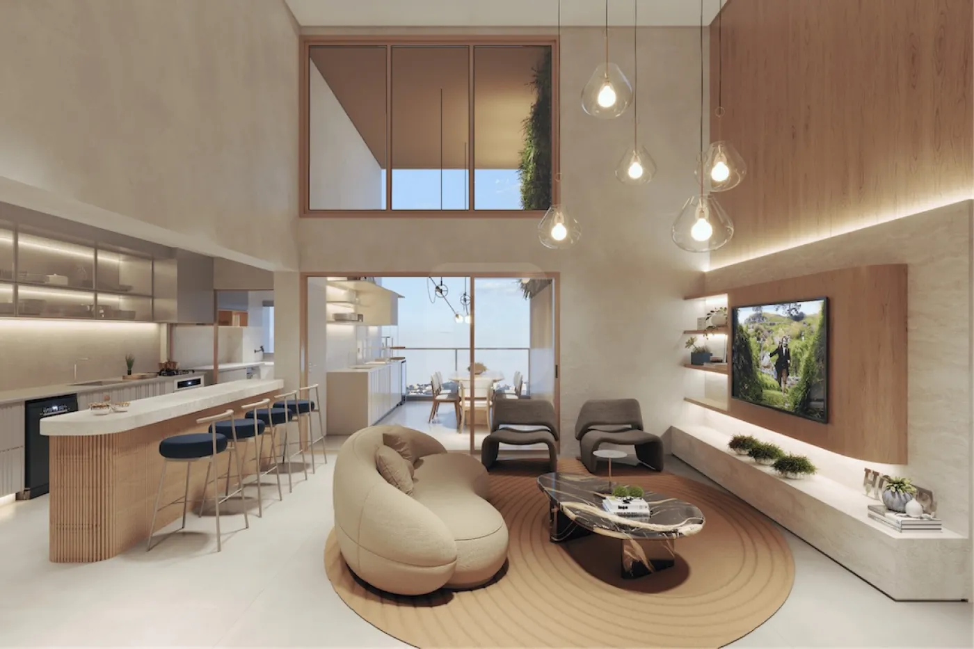 DETALHES DA UNIDADE: A unidade em questão possui 161,66m². A cozinha é no modelo de cozinha aberta, integrada com a sala com pé-direito duplo, aumentando a sensação de amplitude do espaço. É o mesmo modelo de planta existente no apto decorado.