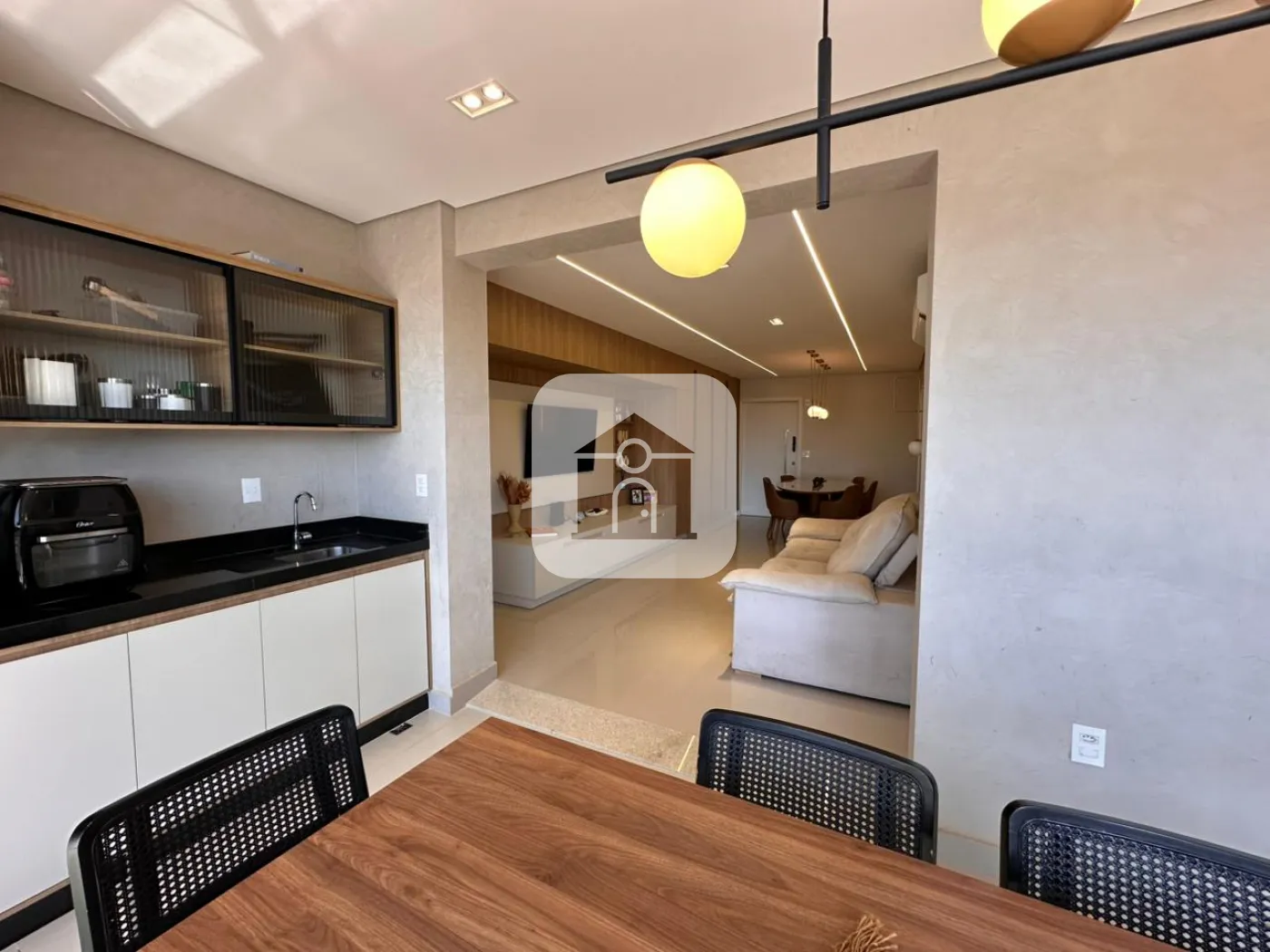 Varanda gourmet integrada e fechada com pele de vidro,