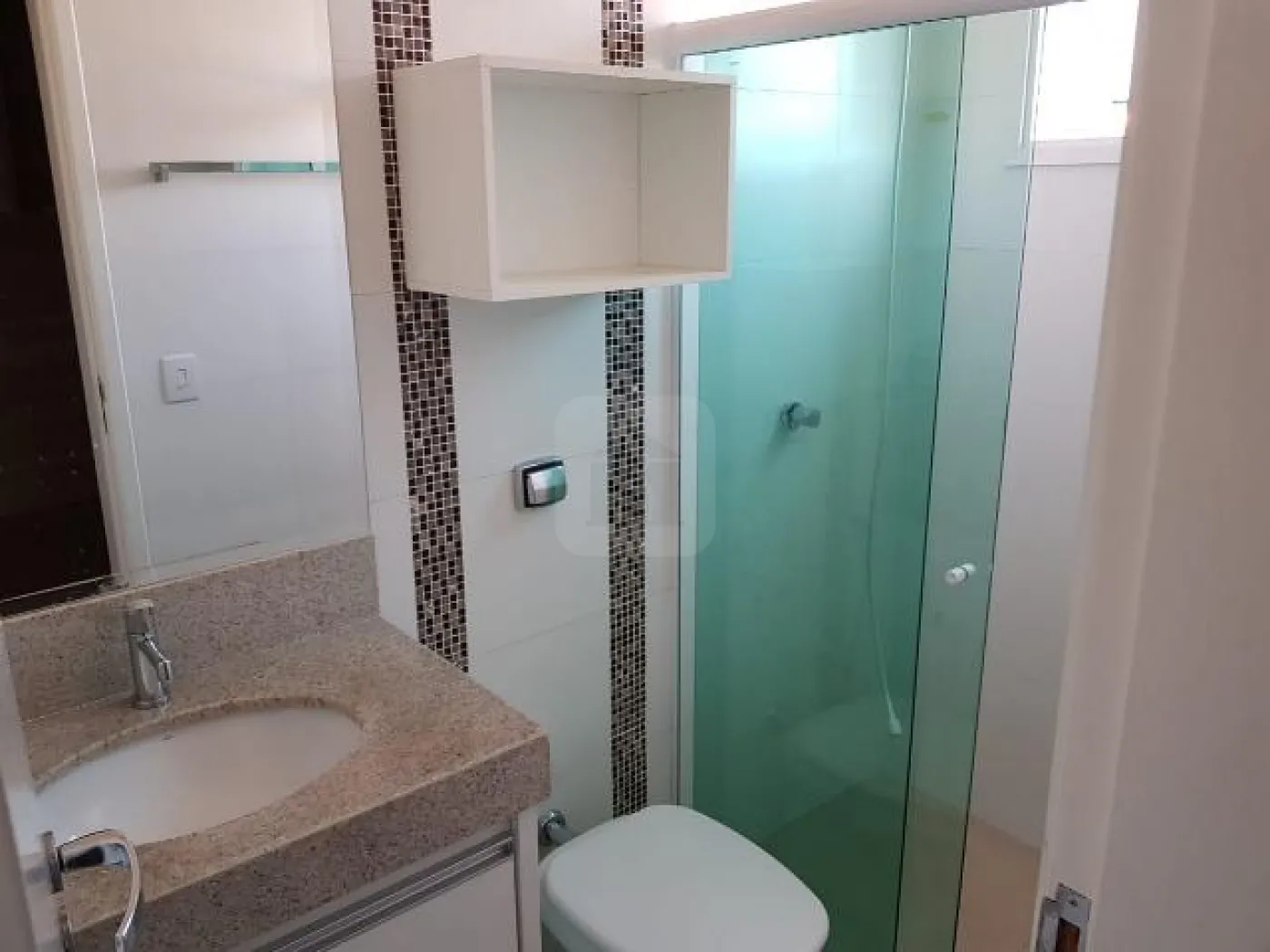 Banheiro social (Com Box Blindex e armário sob a pia),