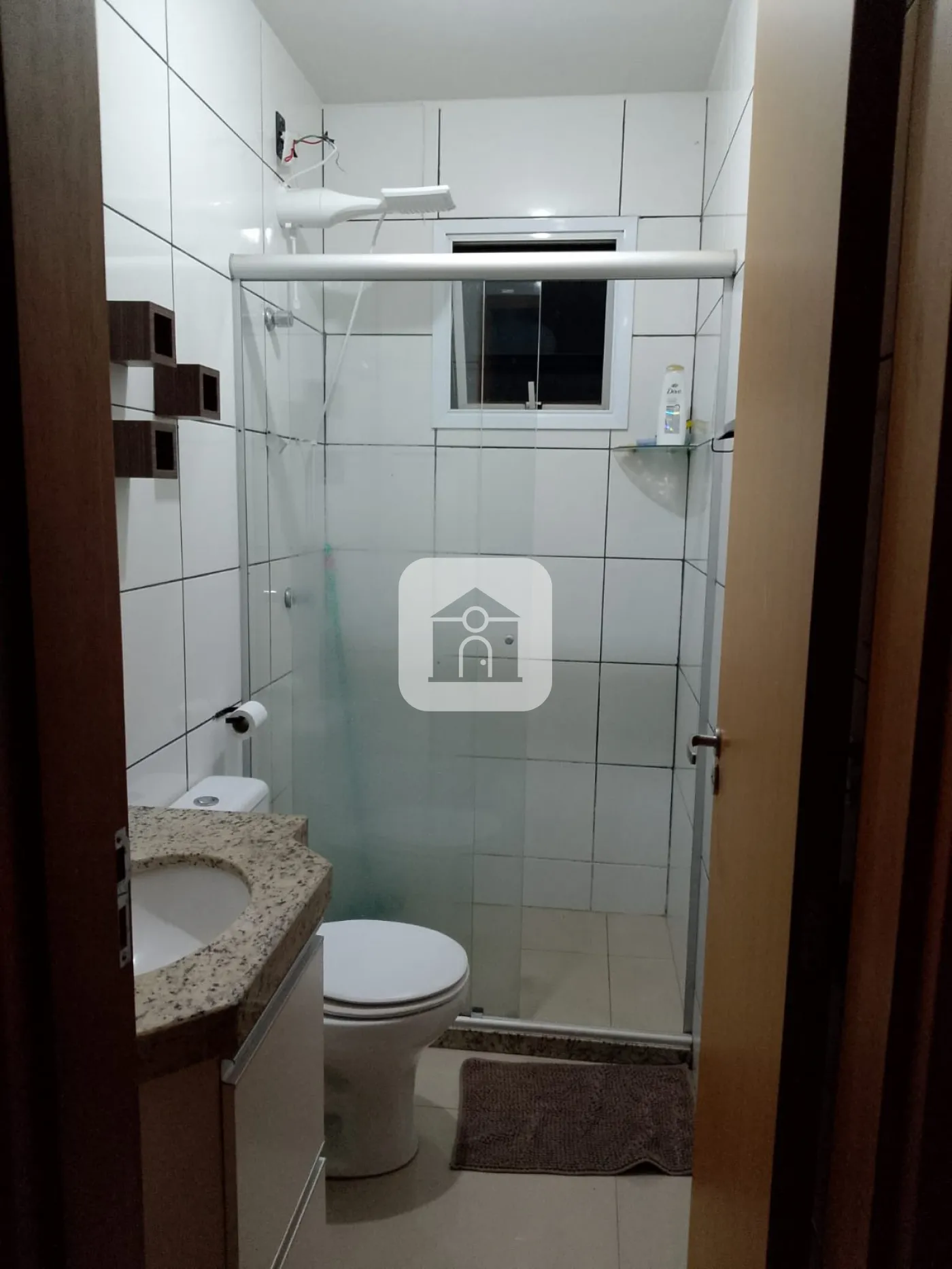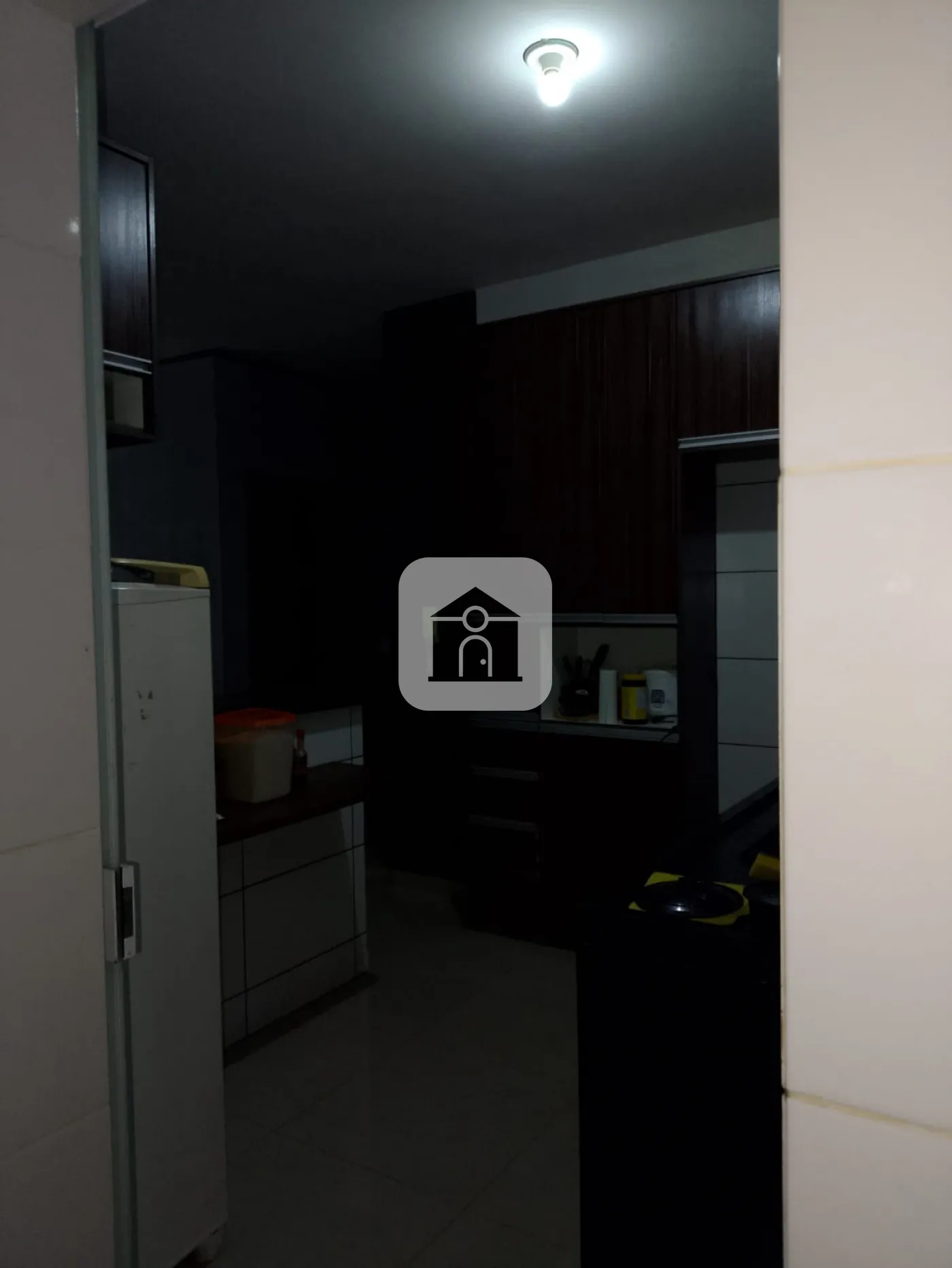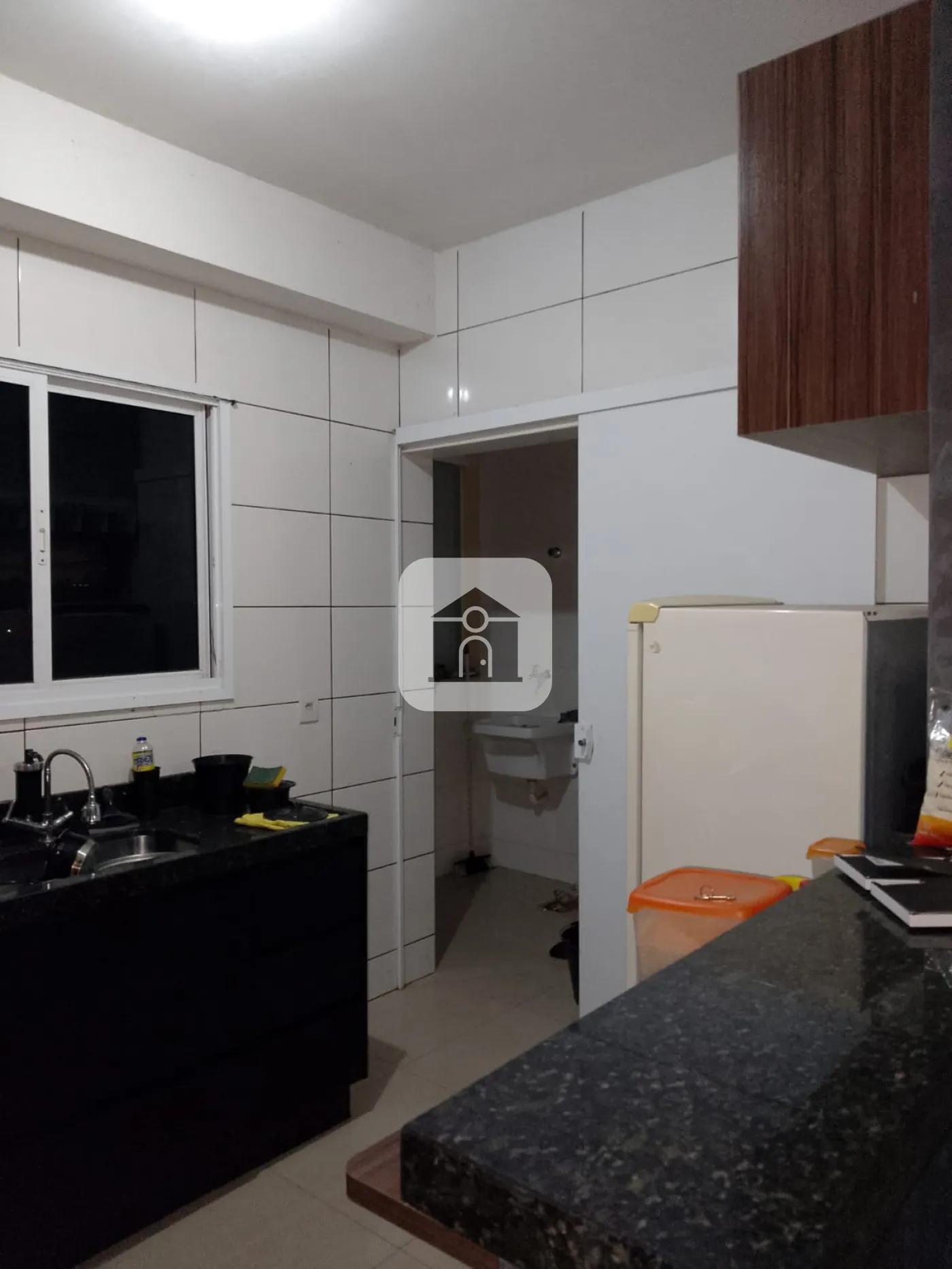 Cozinha com armários, área de serviço separada, banheiro com blindex;