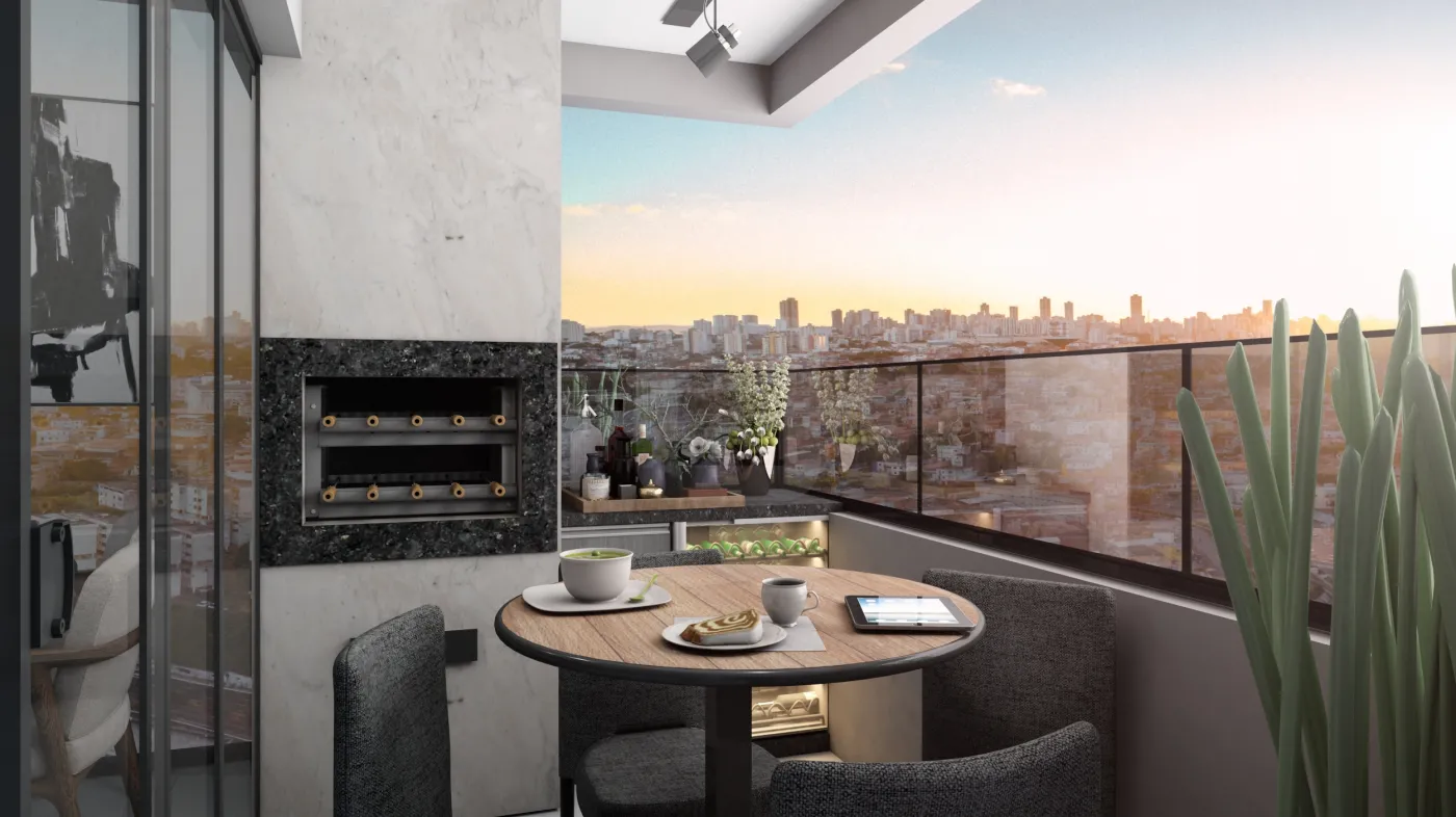 Sacada gourmet com churrasqueira a carvão, perfeita para receber amigos e familiares.