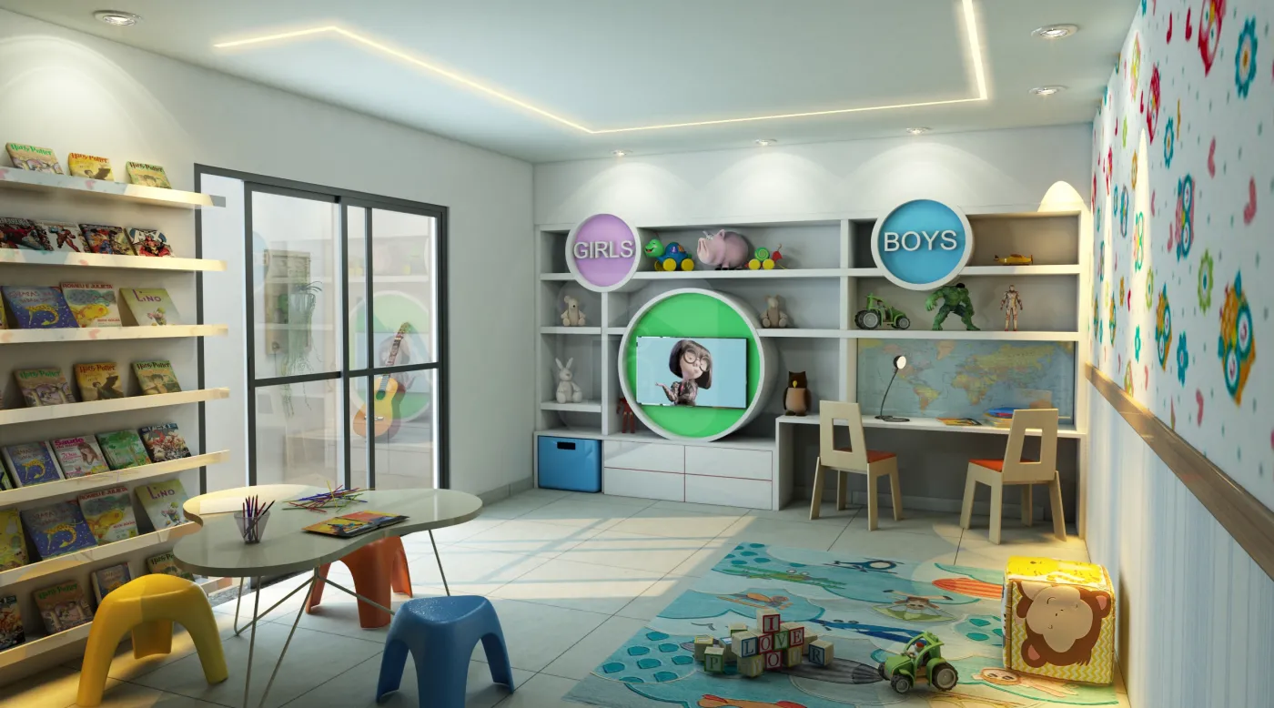 Espaço Kids com Terraço no pavimento térreo, oferecendo um ambiente seguro e divertido para as crianças.