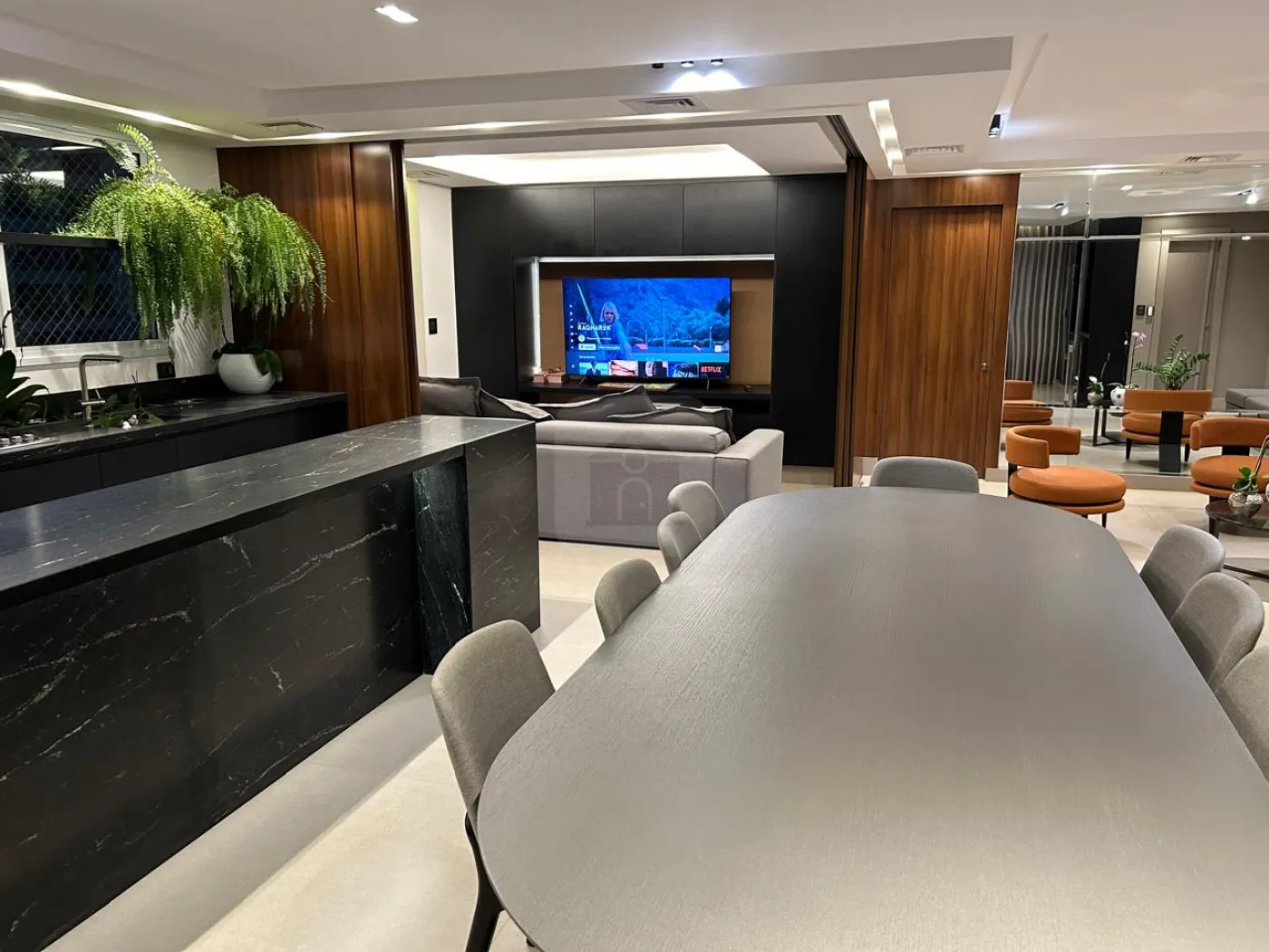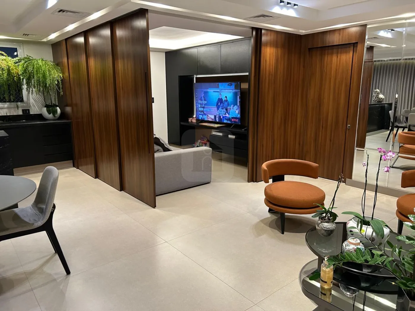 Sala de TV com possibilidade de integrar todos ambientes (portas retrateis);