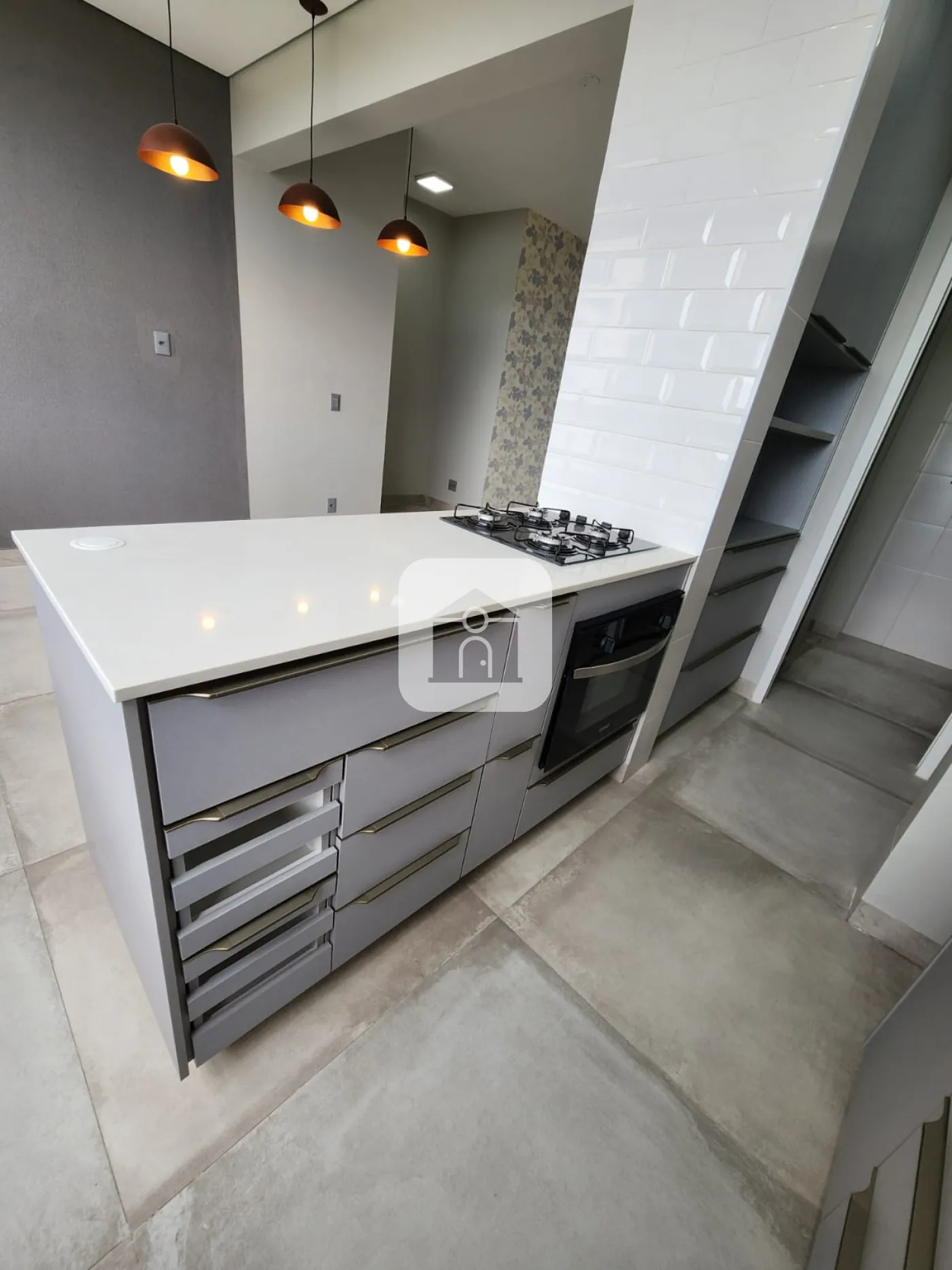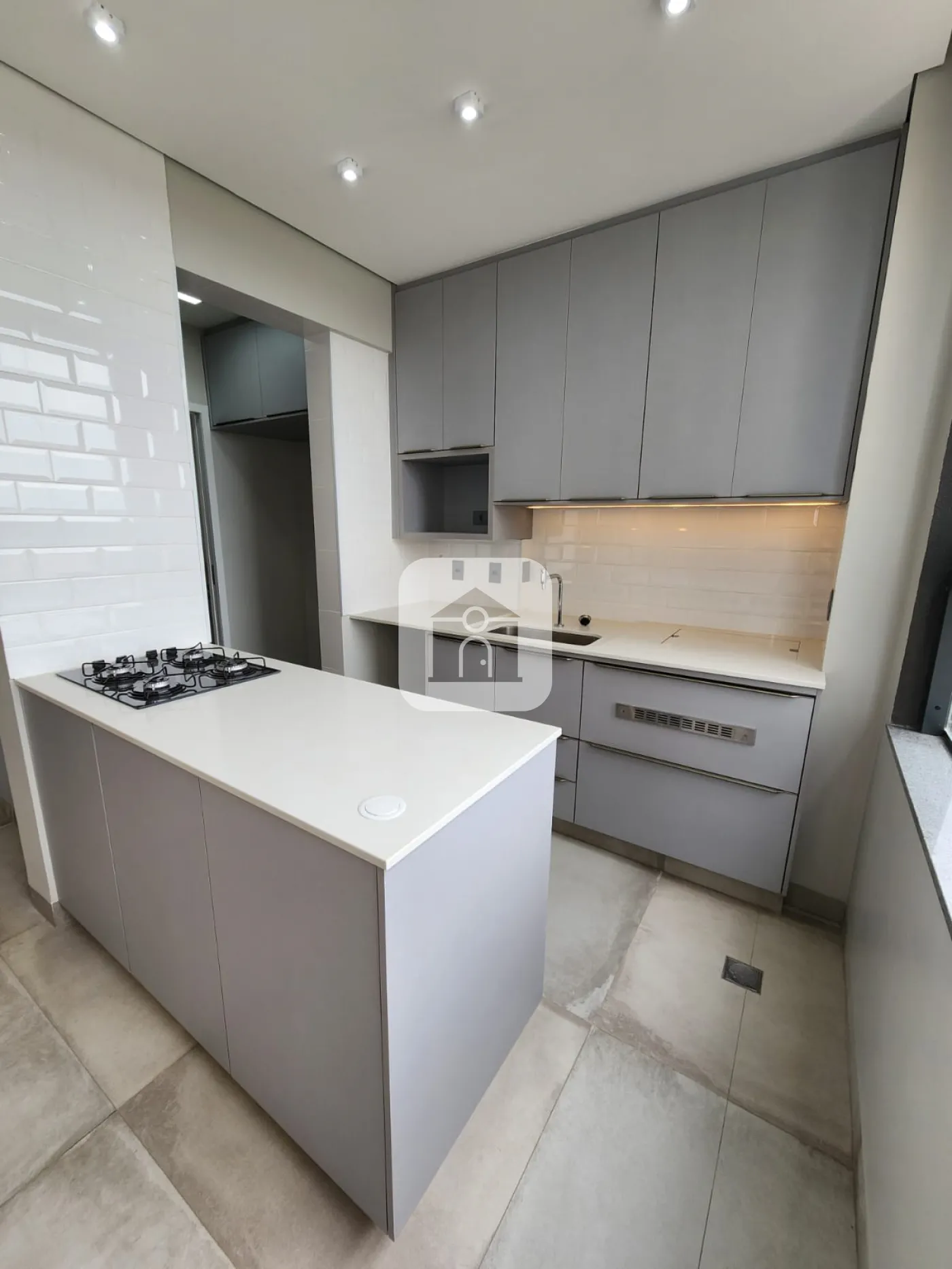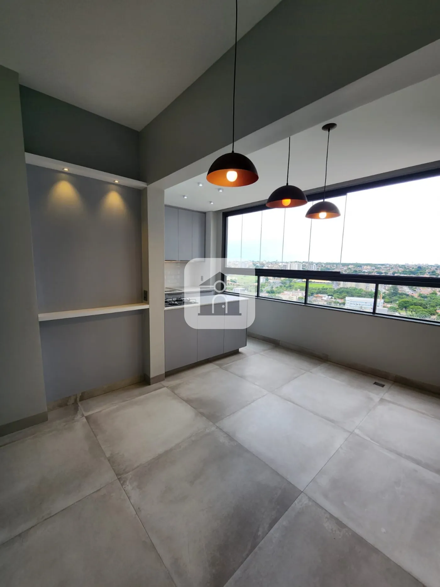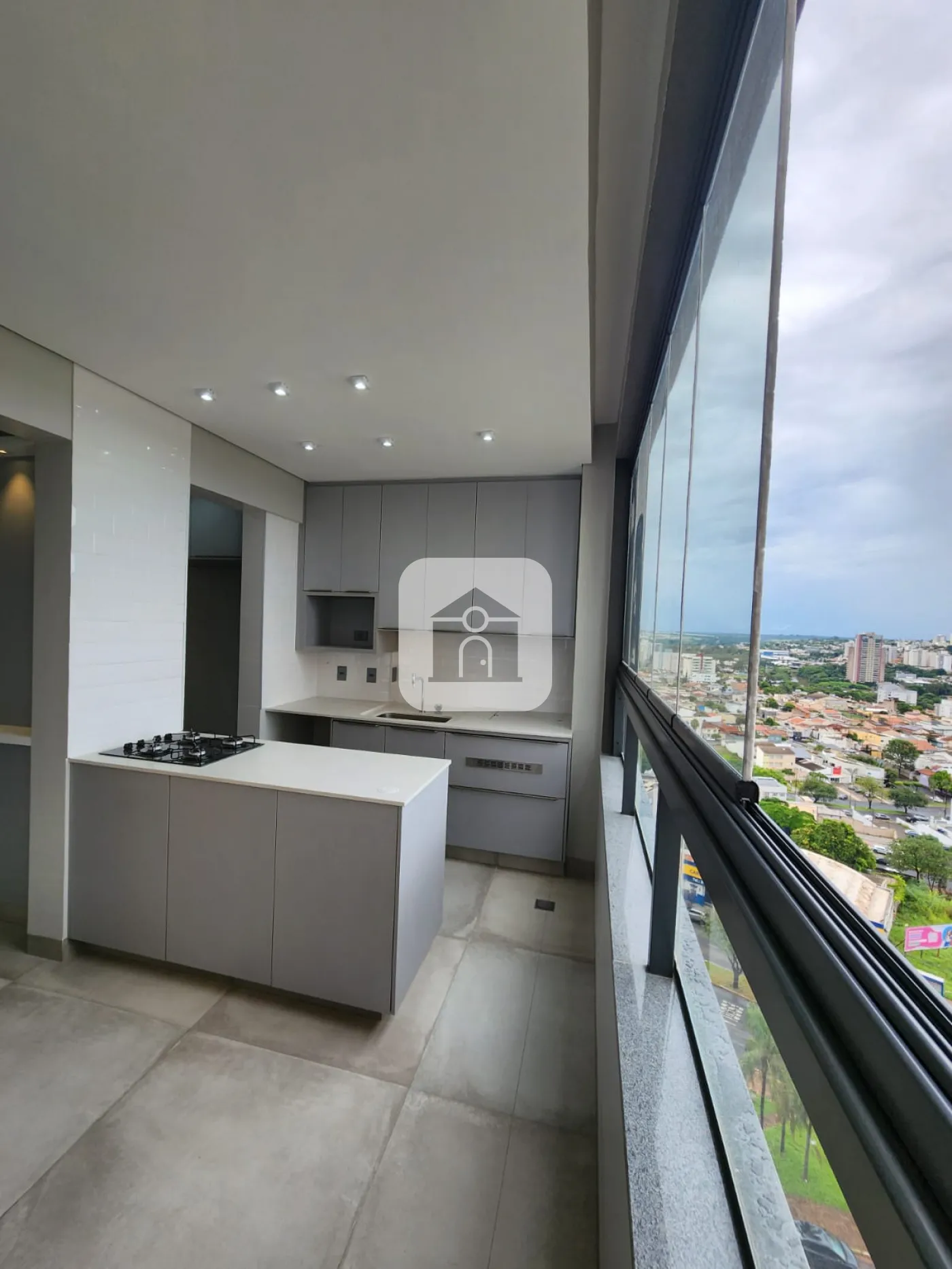 Cozinha americana com churrasqueira a gás, forno elétrico e cooktop;