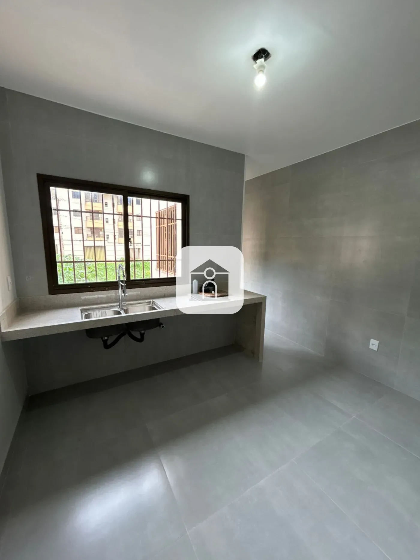 sala em 2 ambientes, cozinha, 02 quartos, garagem para 01 carro.
