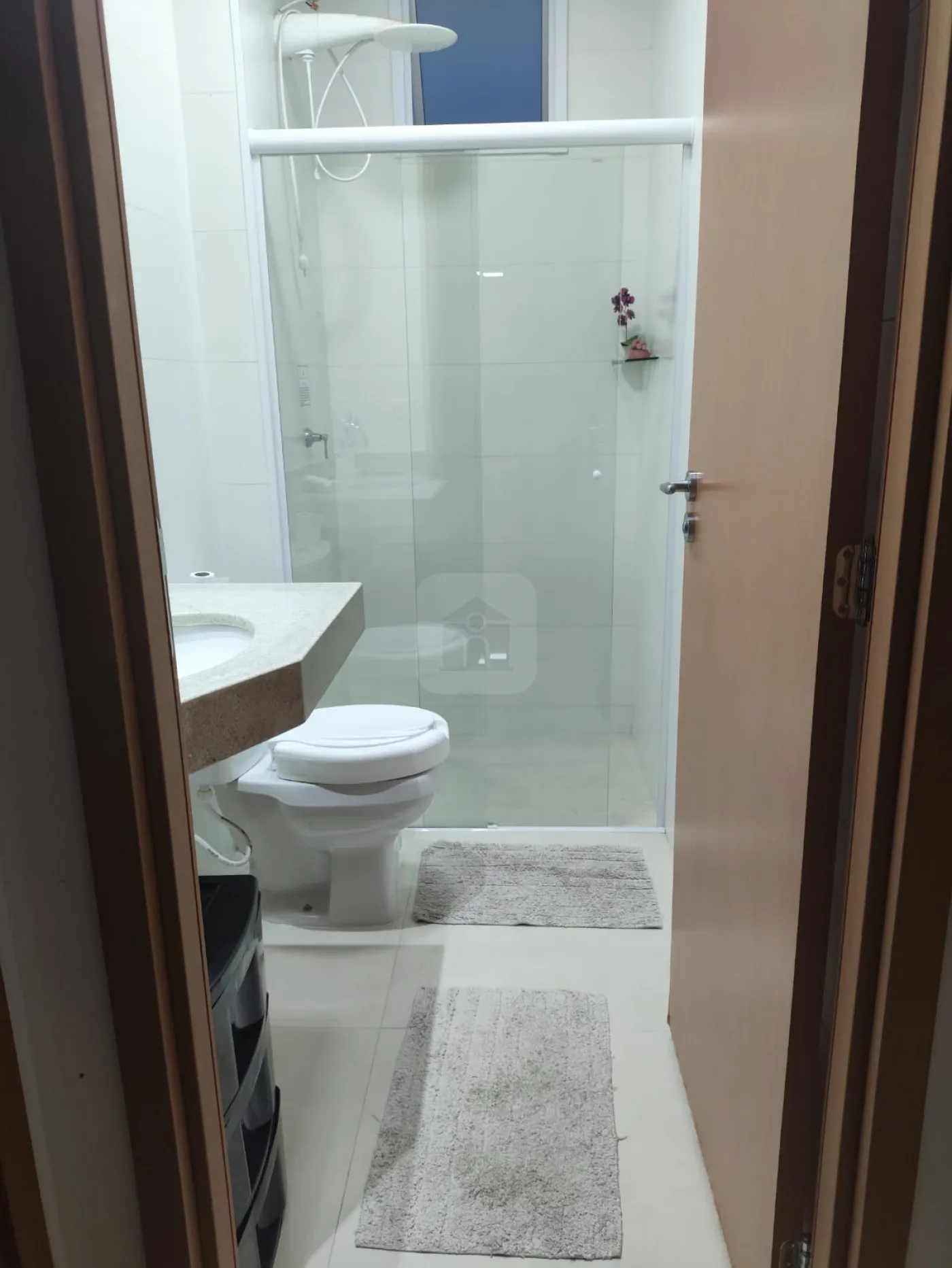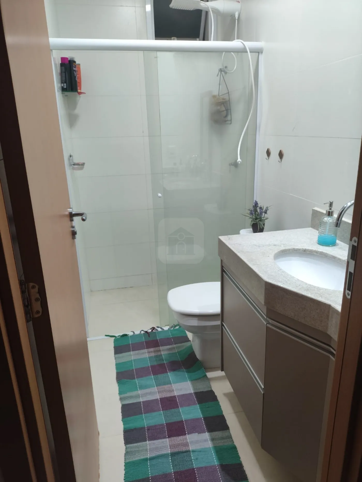 03 quartos sendo 01 suíte com sacada, armário sob lavatório em ambos os banheiros;