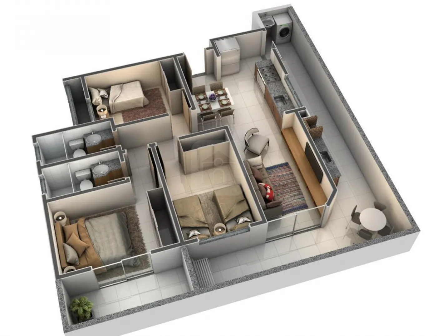 varanda goumert em L passa por todos os cômodos,