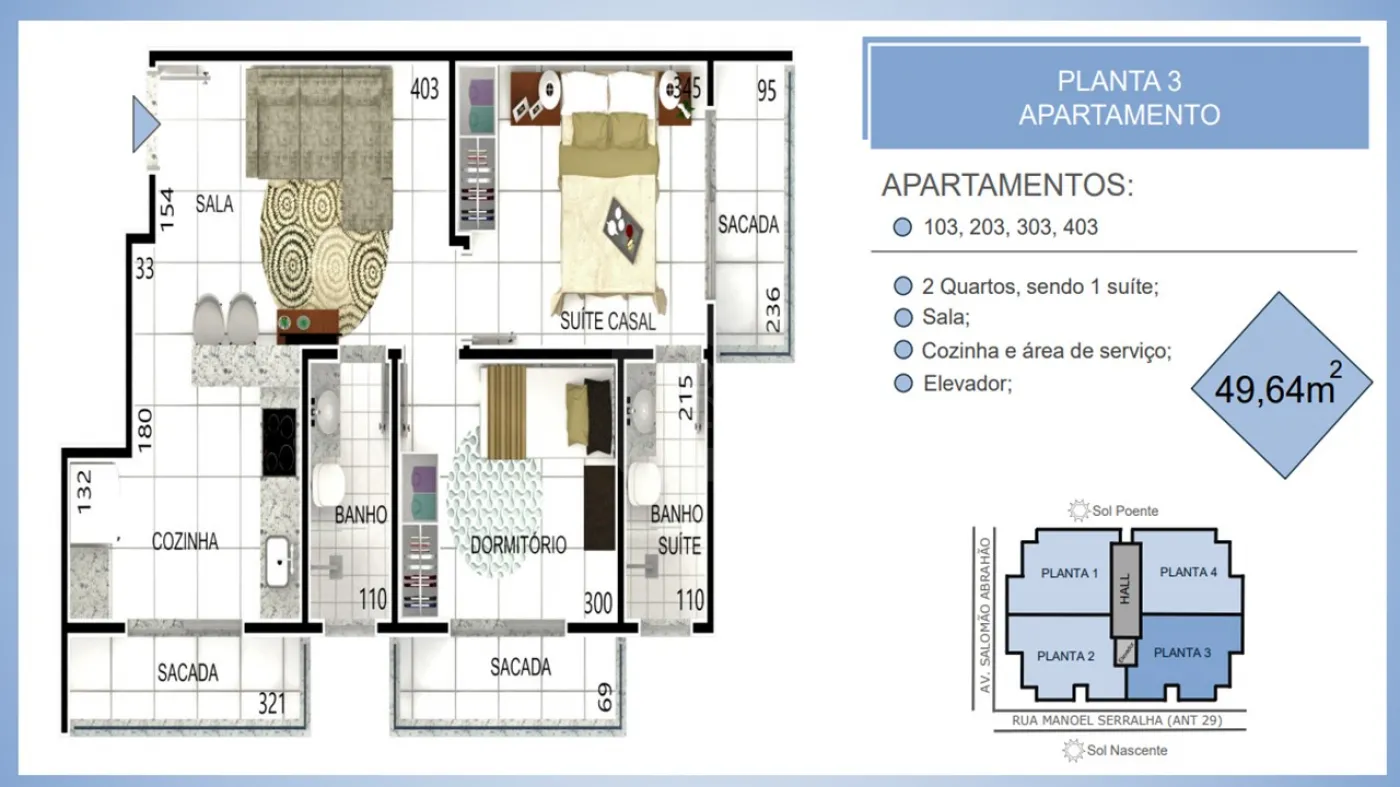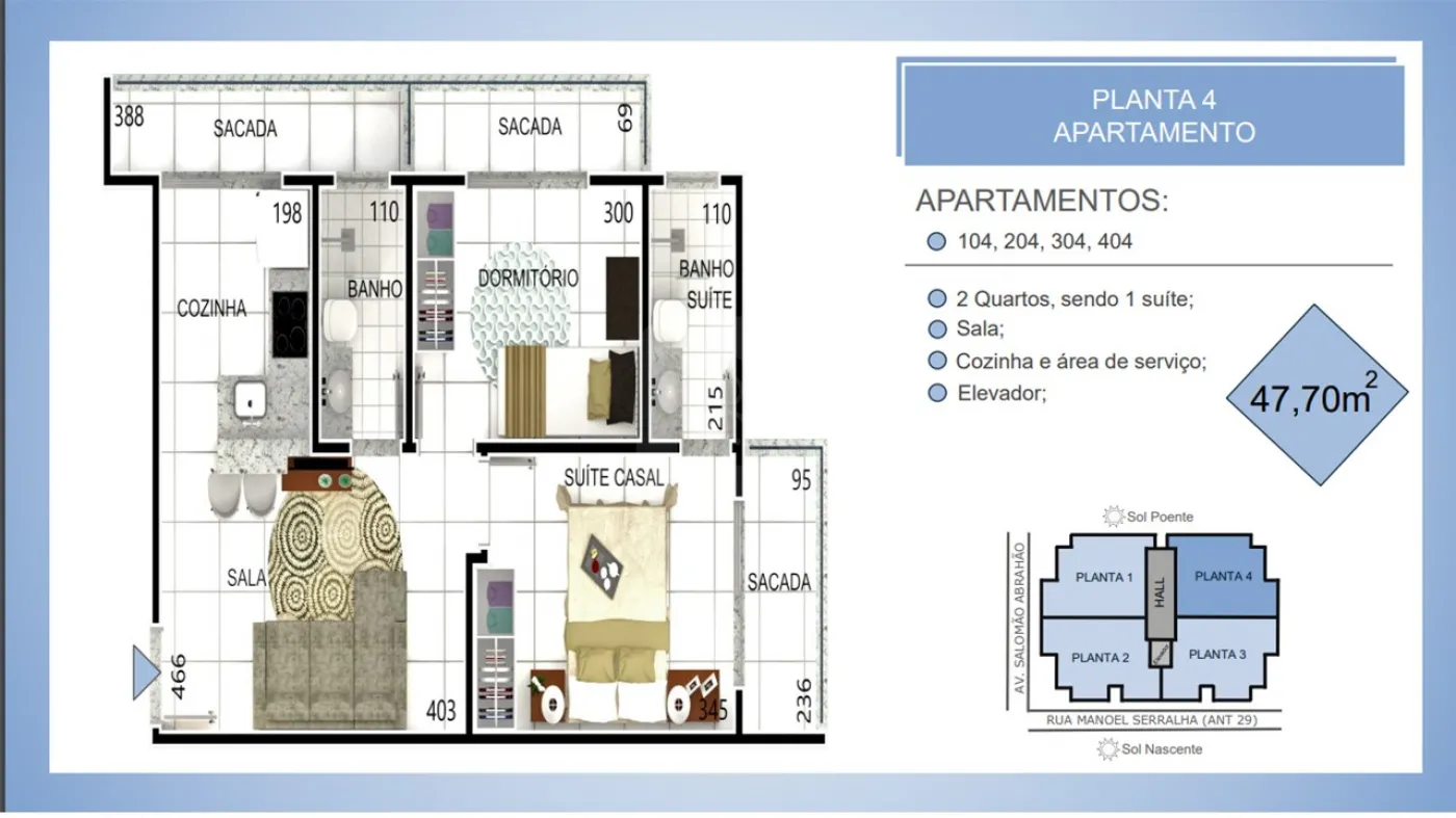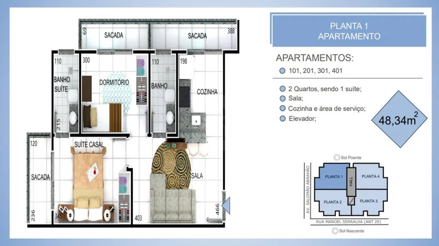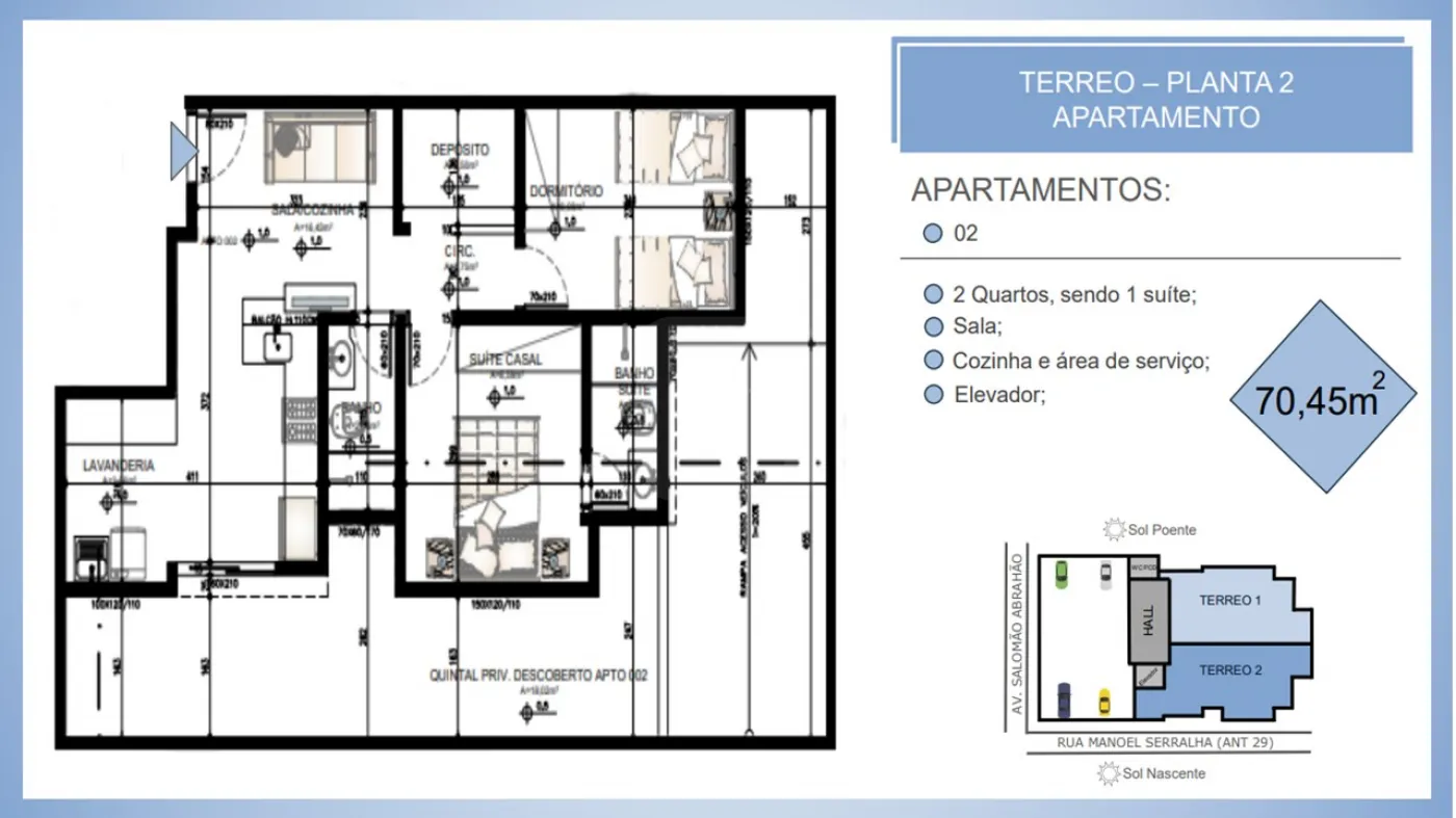 * 02 quartos, sendo 01 suíte,