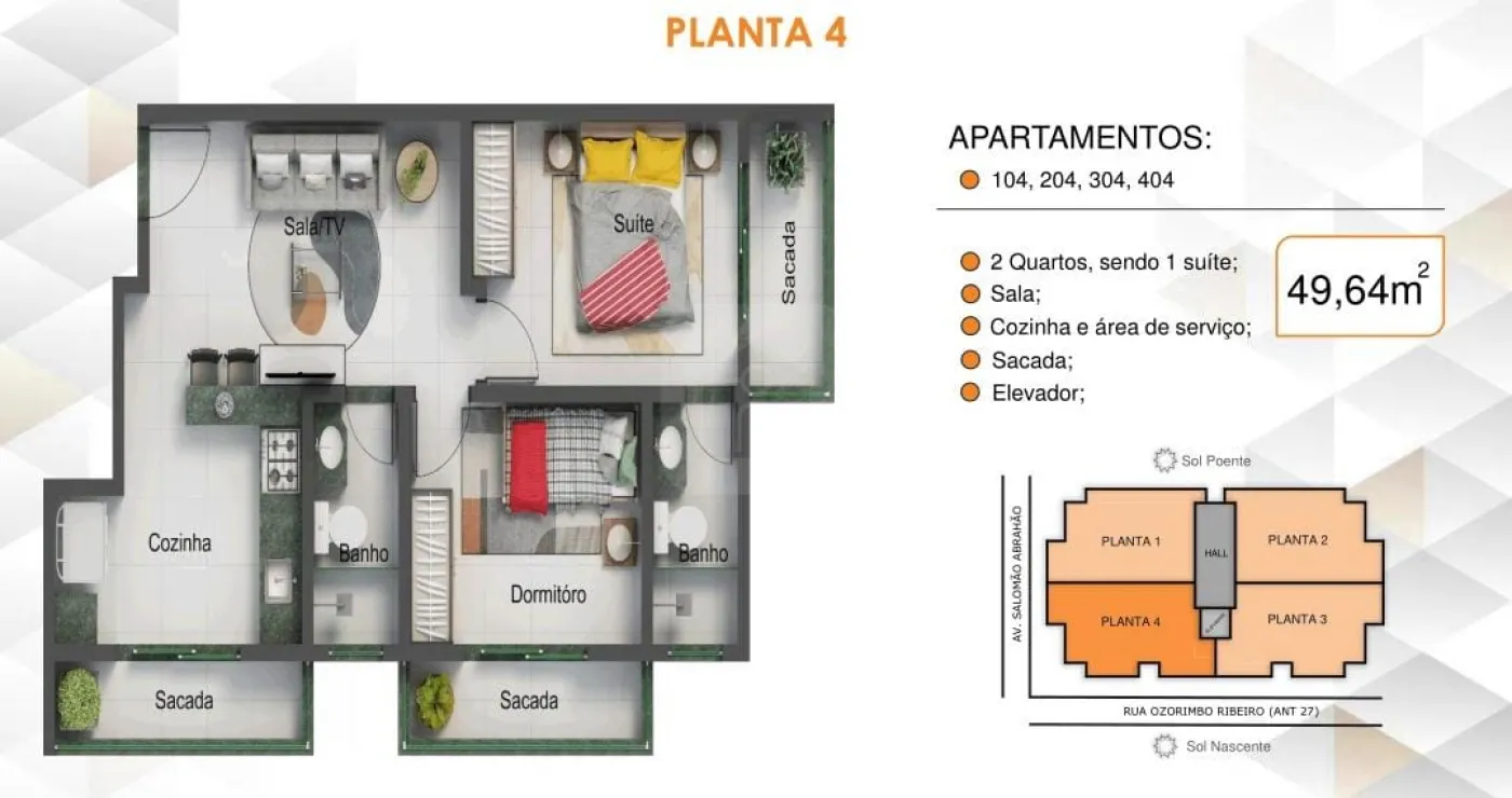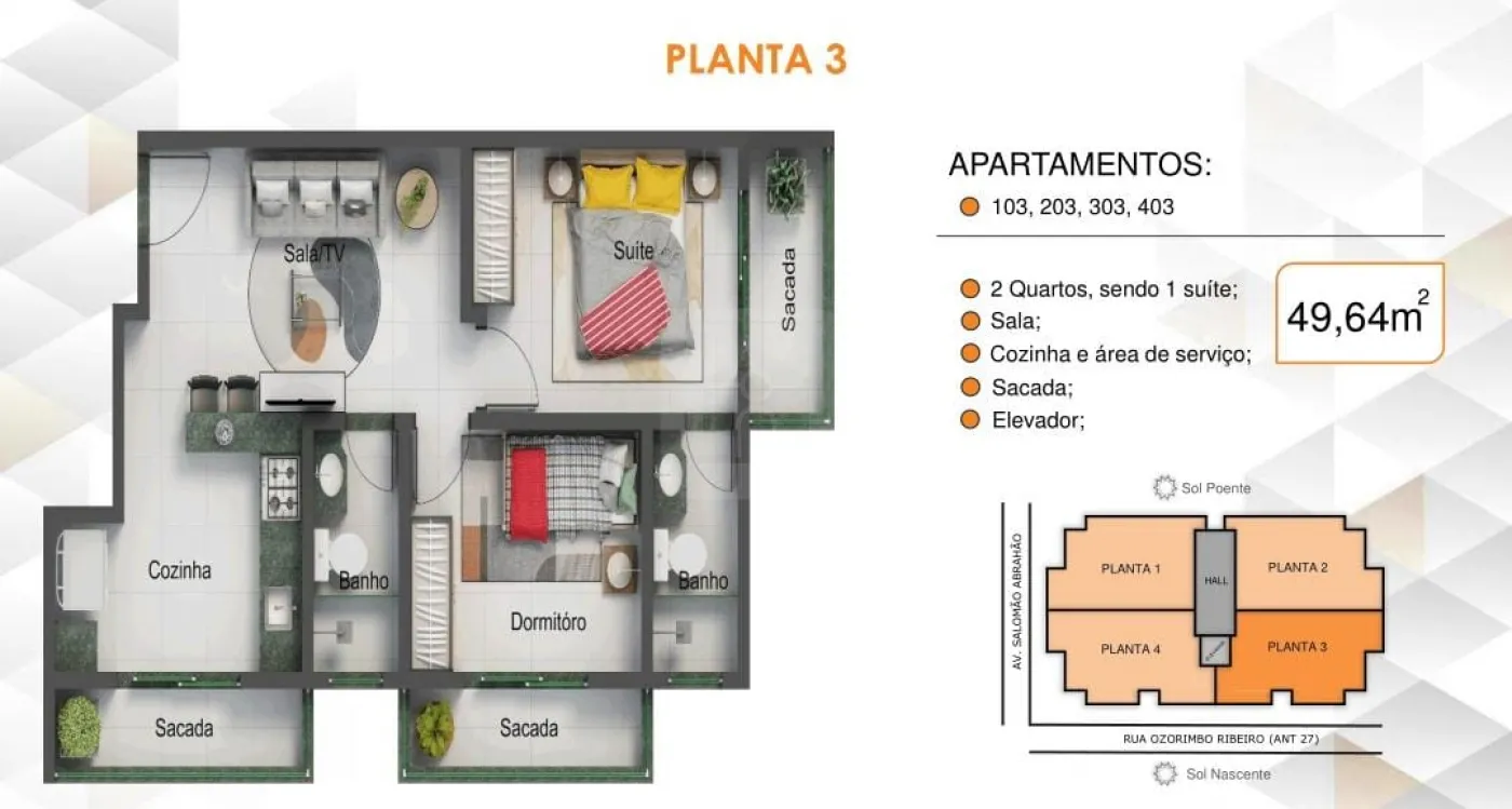 203 Fundo Esquerdo 49,64m² R$328.372,00