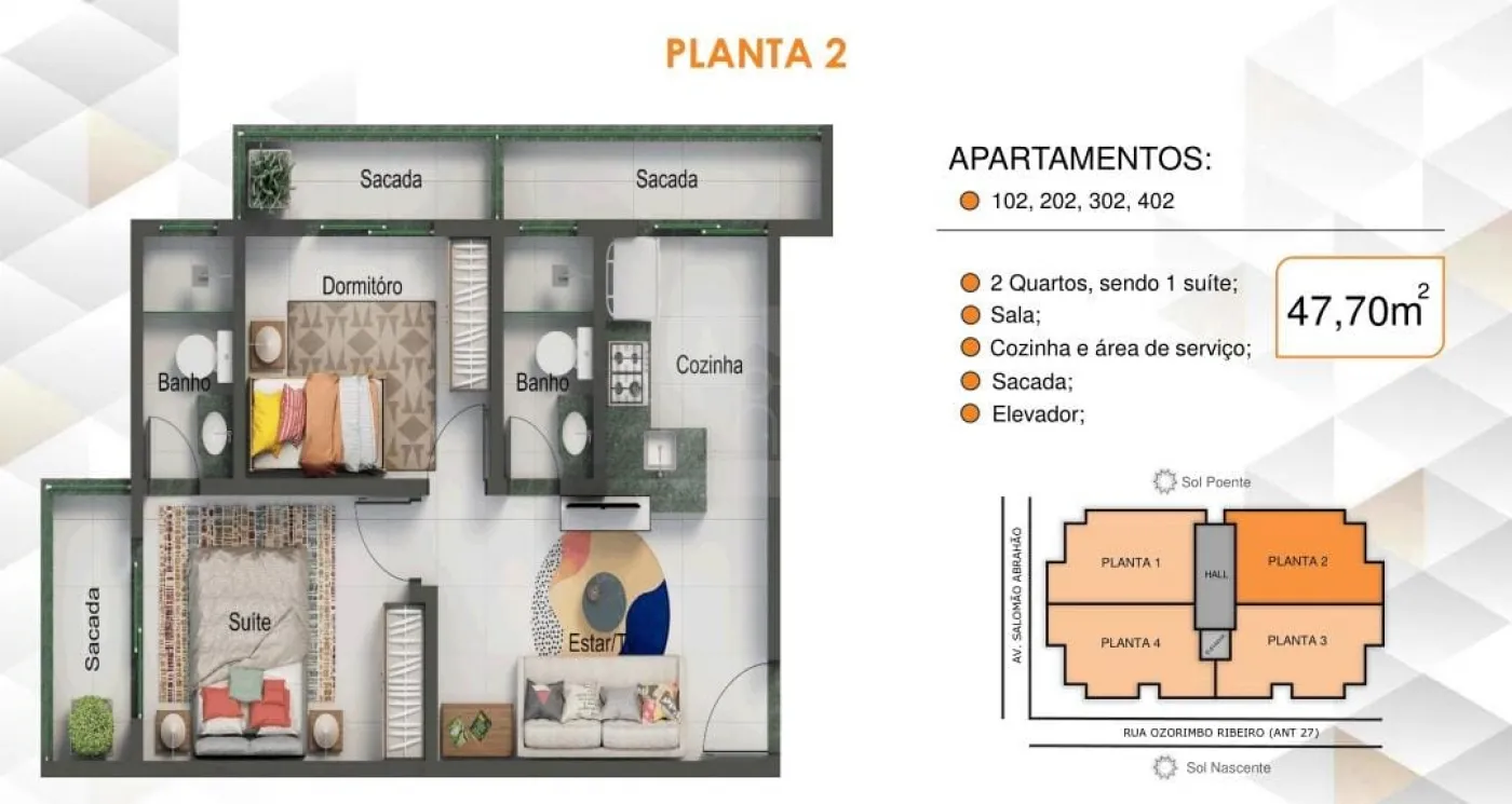 401 Frente 47,70m² R$327.247,00