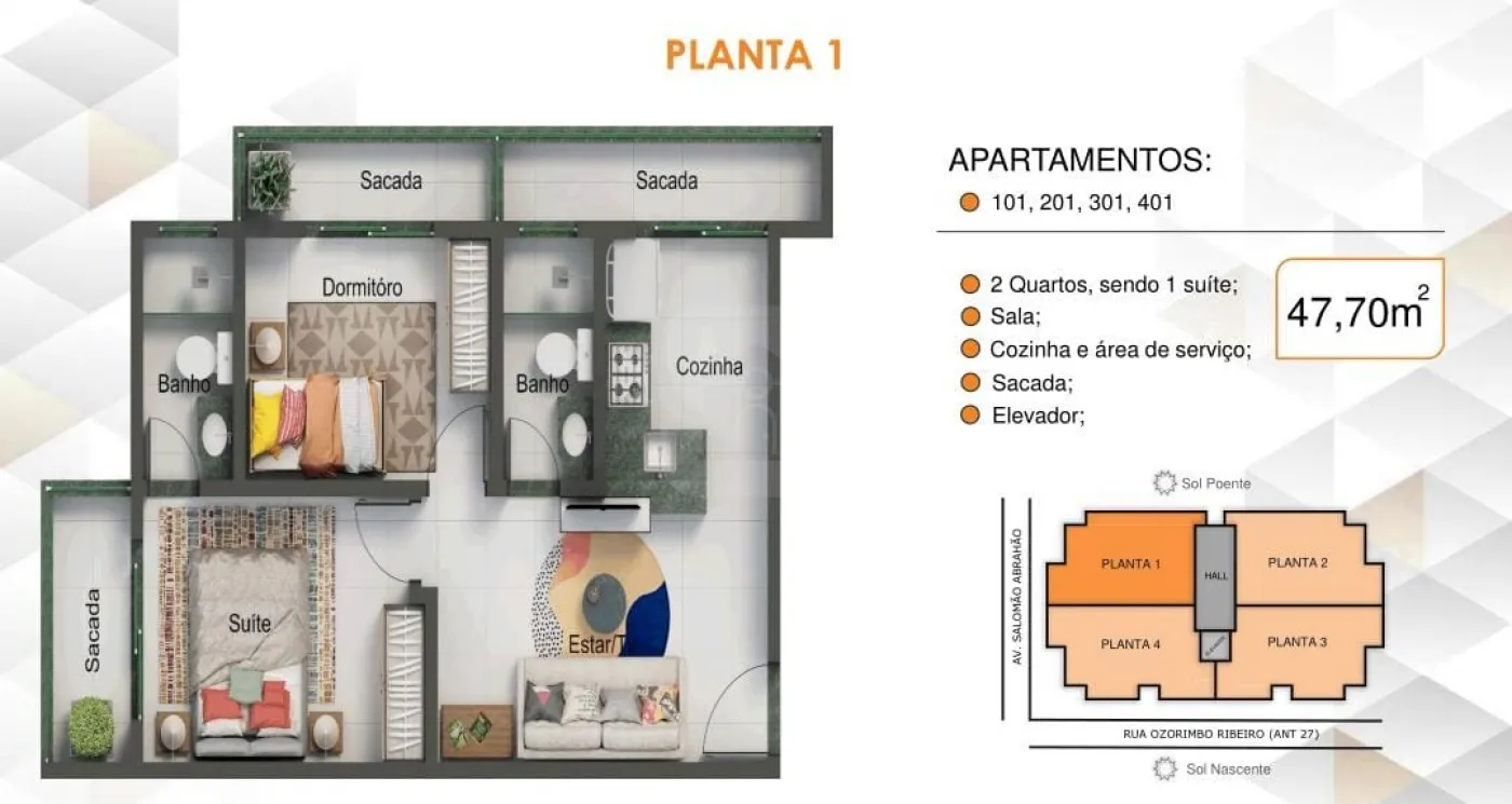 101 Frente 47,70m² R$309.285,00