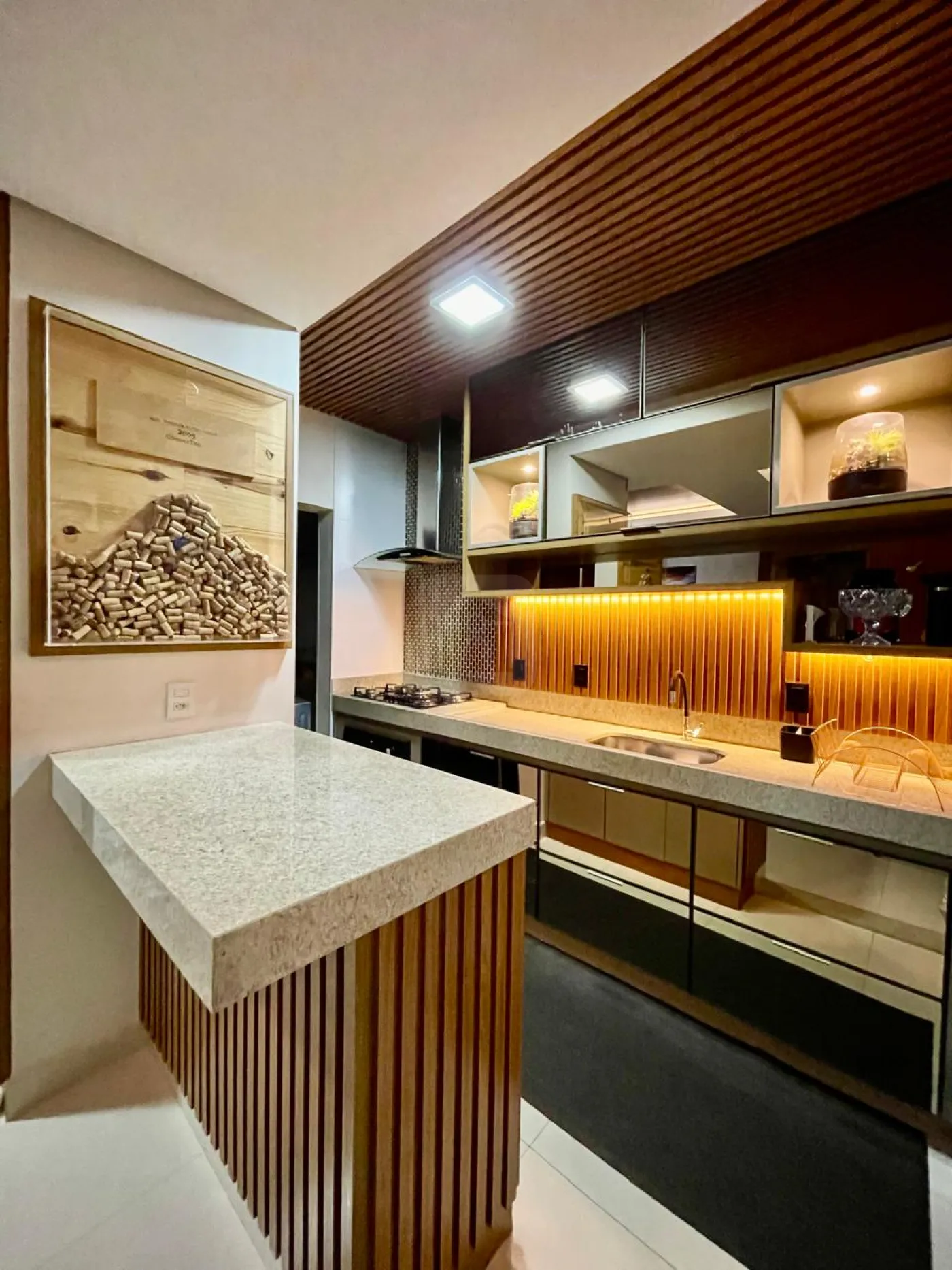 - Belíssimo apartamento PORTEIRA FECHADA com 74m² de área privativa, com sala em 02 ambientes, 02 quartos, sendo 01 suíte, banheiro social, cozinha, área de serviço separada, sacada com área gourmet com churrasqueira a carvão, vista da cidade e por do sol, todos os cômodos com móveis planejados de altíssimo padrão.