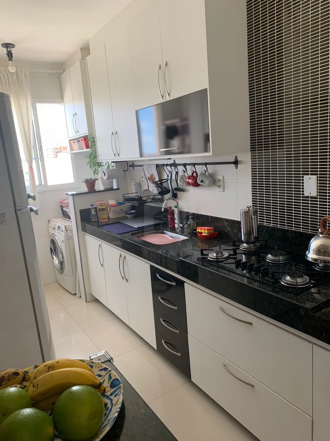 Apartamento com sala em 02 ambientes, conjugada com a cozinha, todo completo de armários embutidos, 02 quartos com armários, sendo uma suíte com armário e box blindex, área de serviço , 01 vaga de garagem, escada.