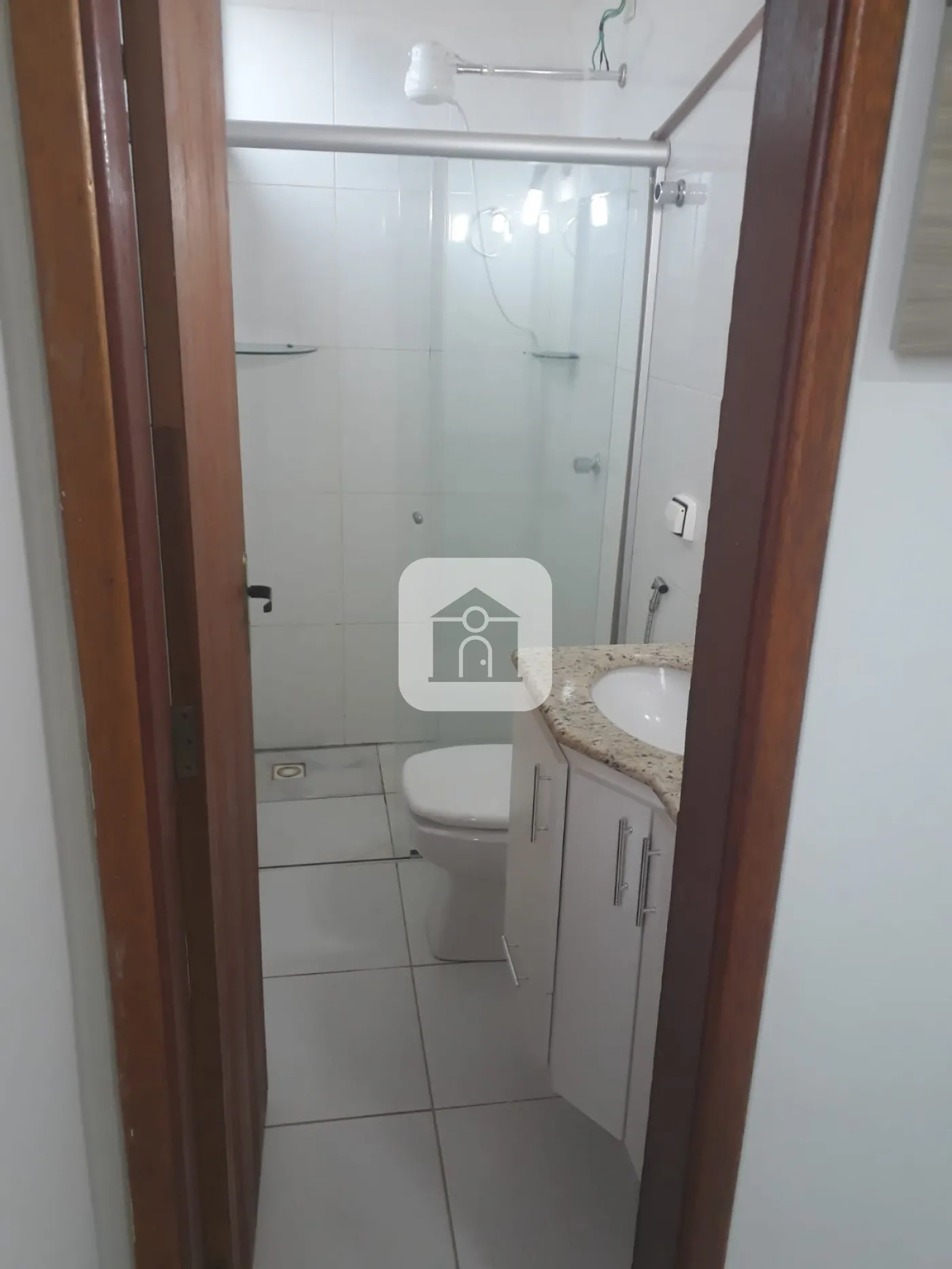Banheiro social com armários e box