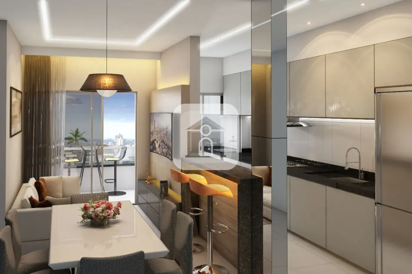 Conta com 02 quartos, sendo 01 suíte com varanda, sala confortável, cozinha funcional e 02 vagas de garagem.