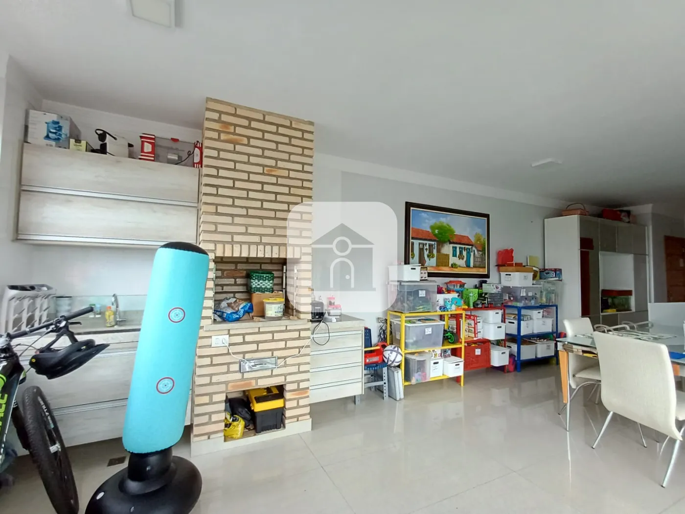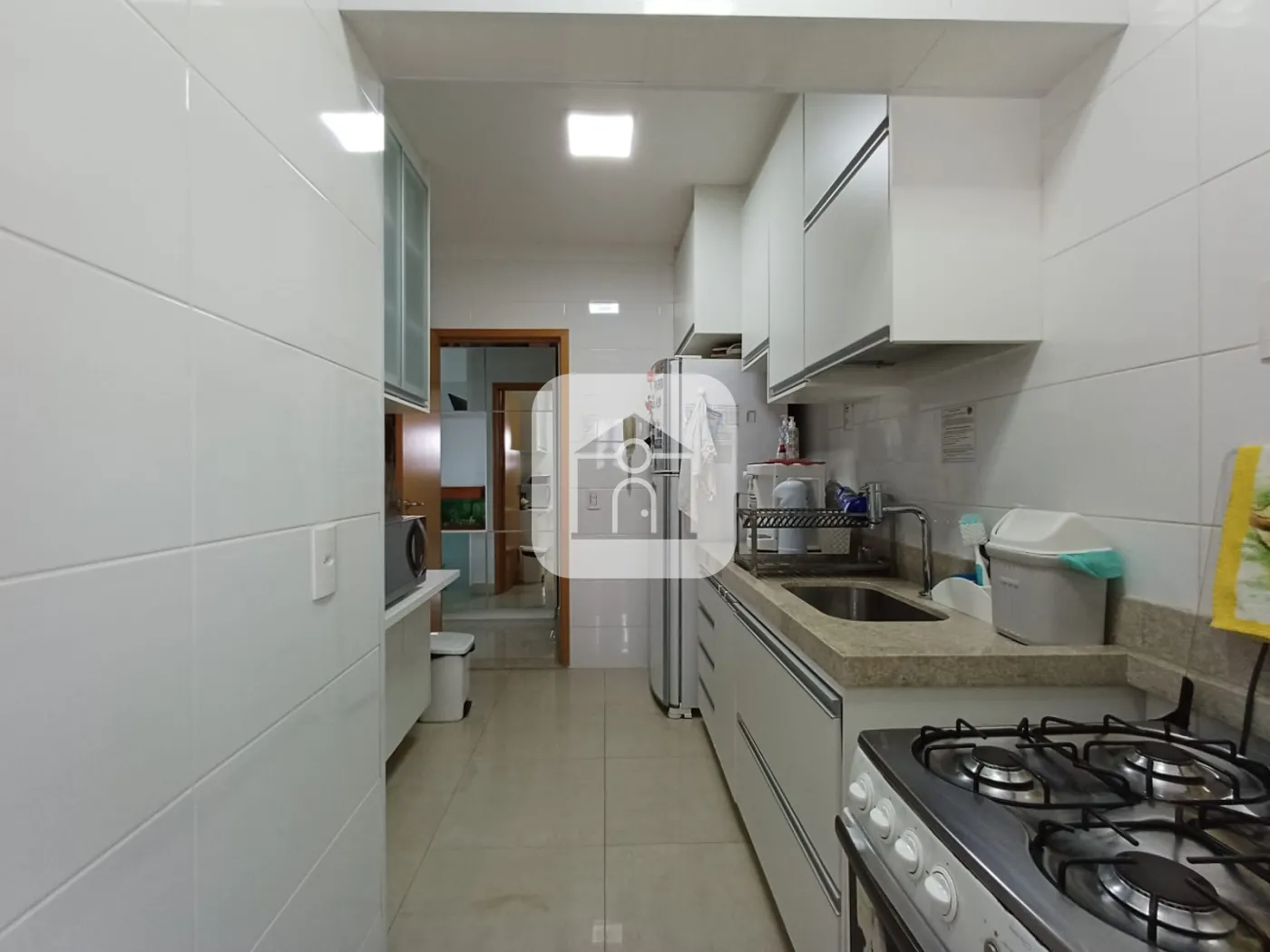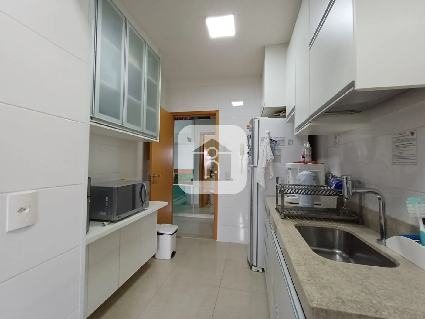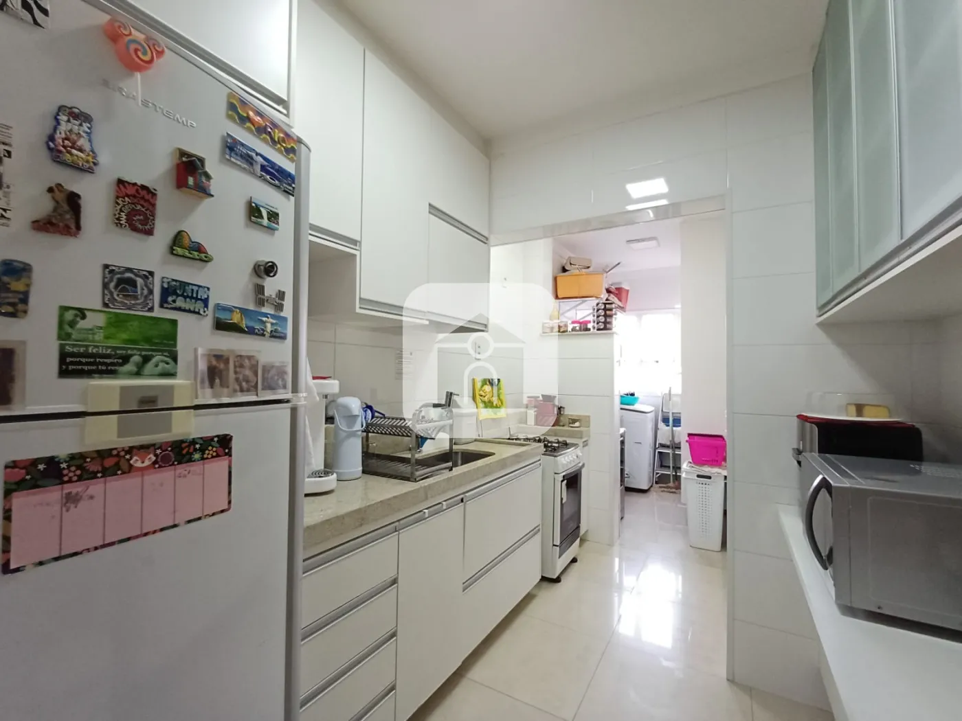 Cozinha e área de serviço localizadas no andar superior, possuem armários.