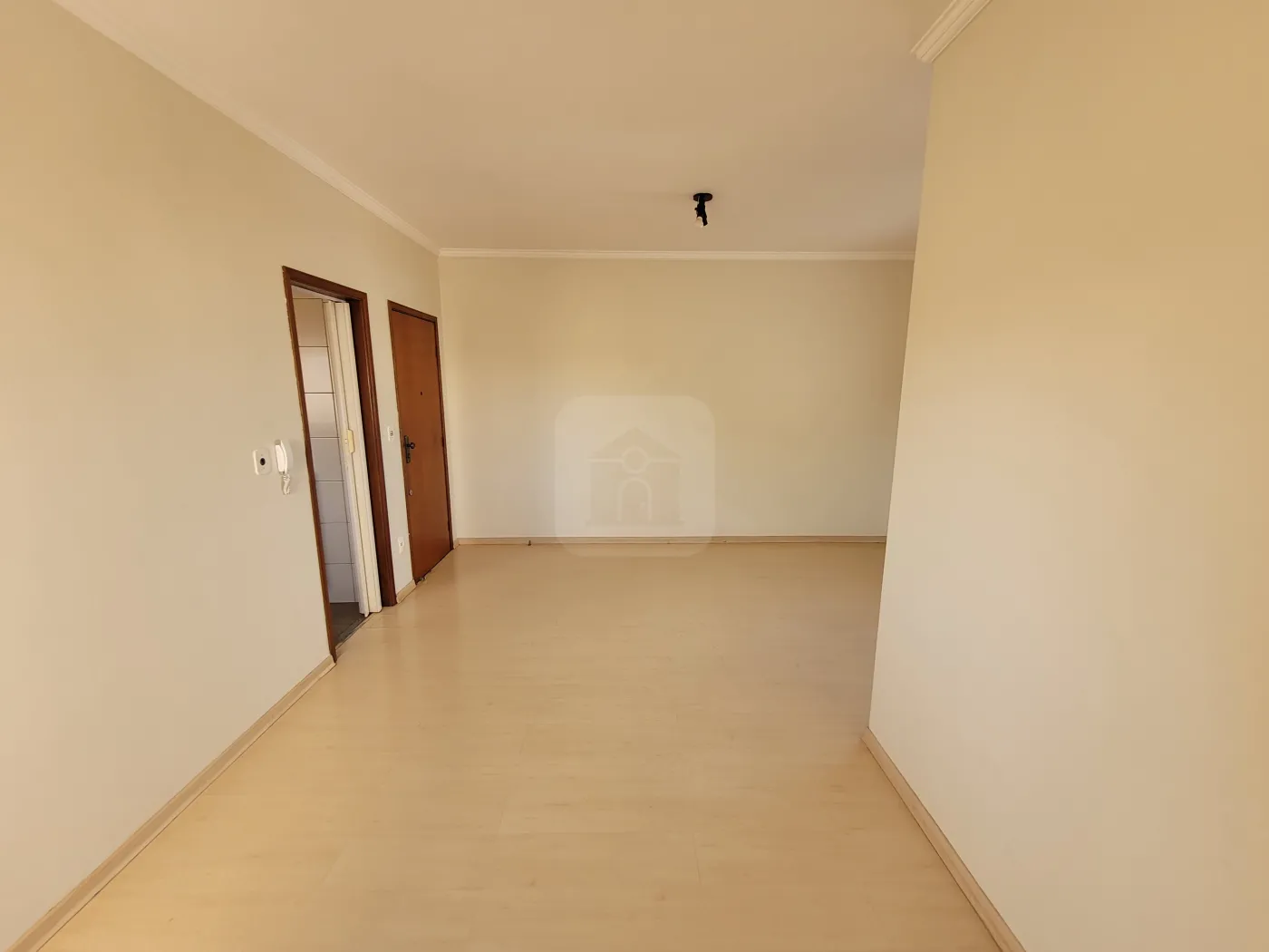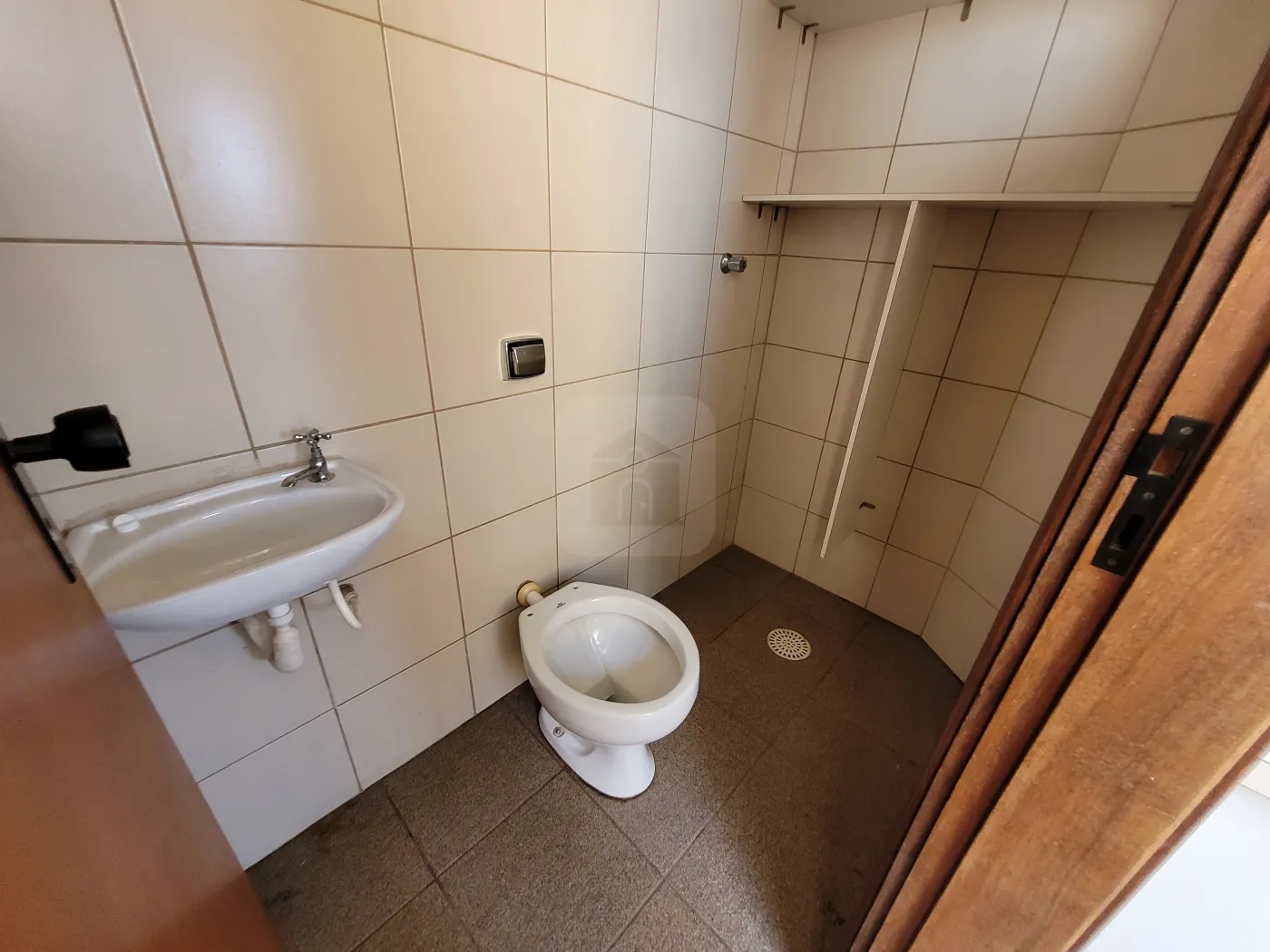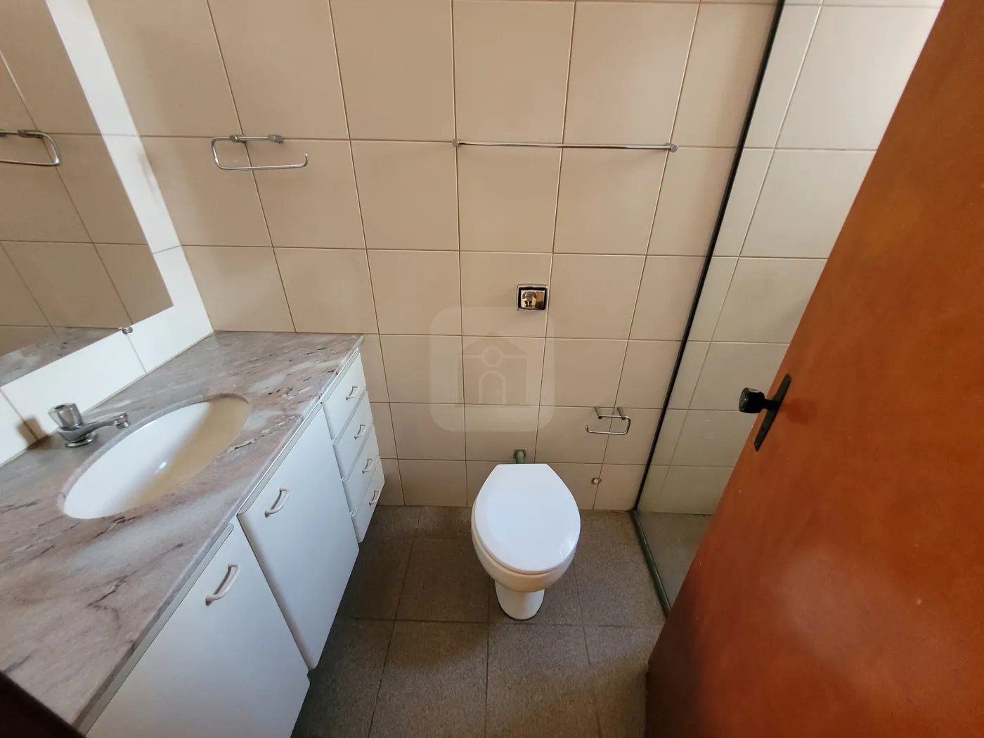 Sala em 02 ambientes, hall com roupeiro, banho social com box em blindex, armário e espelho;
