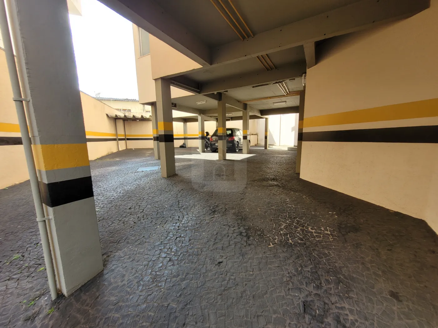 Garagem para 02 carros presa, portão e porteiro eletrônico, piso cerâmica.