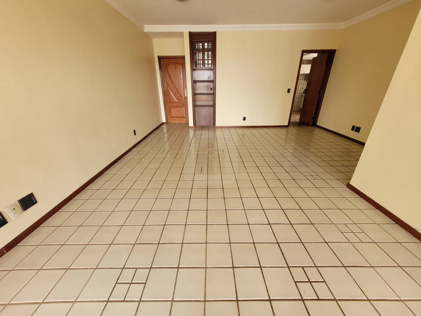 Sala ampla para 02 ambientes, com sacada e cristaleira;