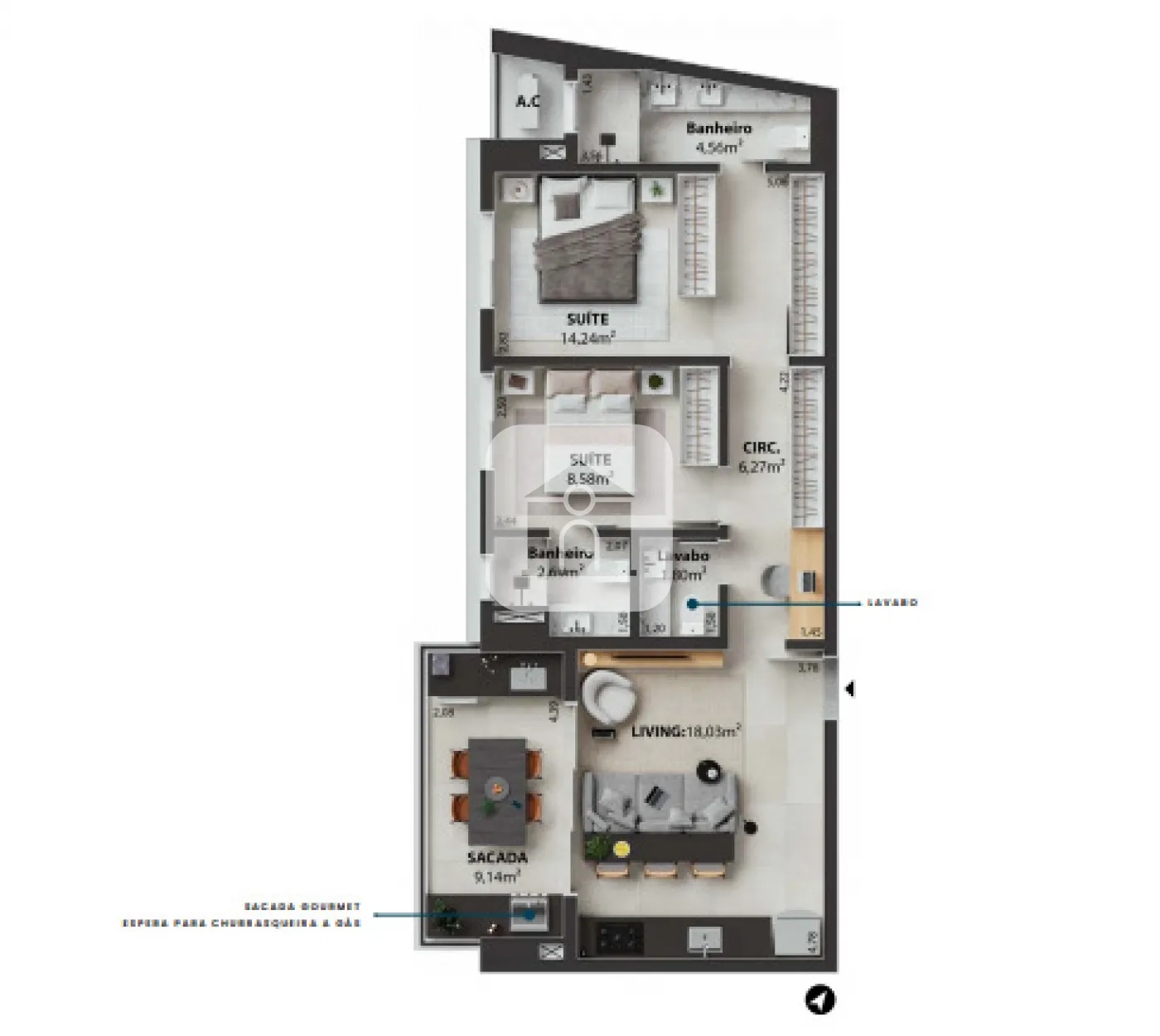 Previsão de ponto elétrico para automação da esquadria da suíte master;