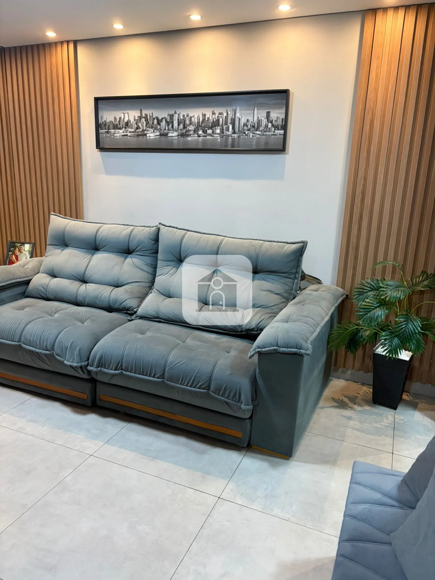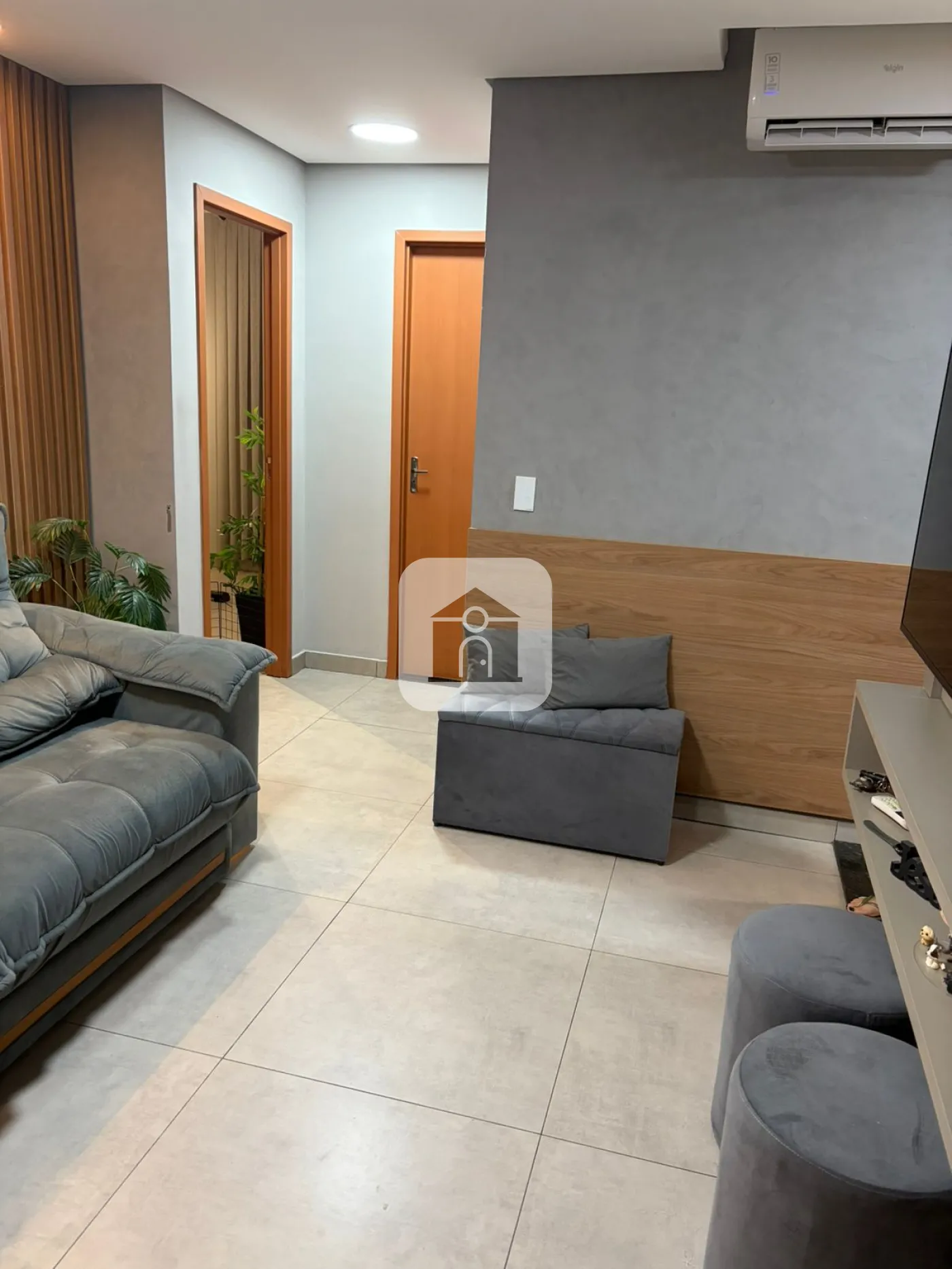 A decoração conta com painéis modernos, pintura em cimento queimado e iluminação diferenciada no gesso, trazendo sofisticação e aconchego ao ambiente.