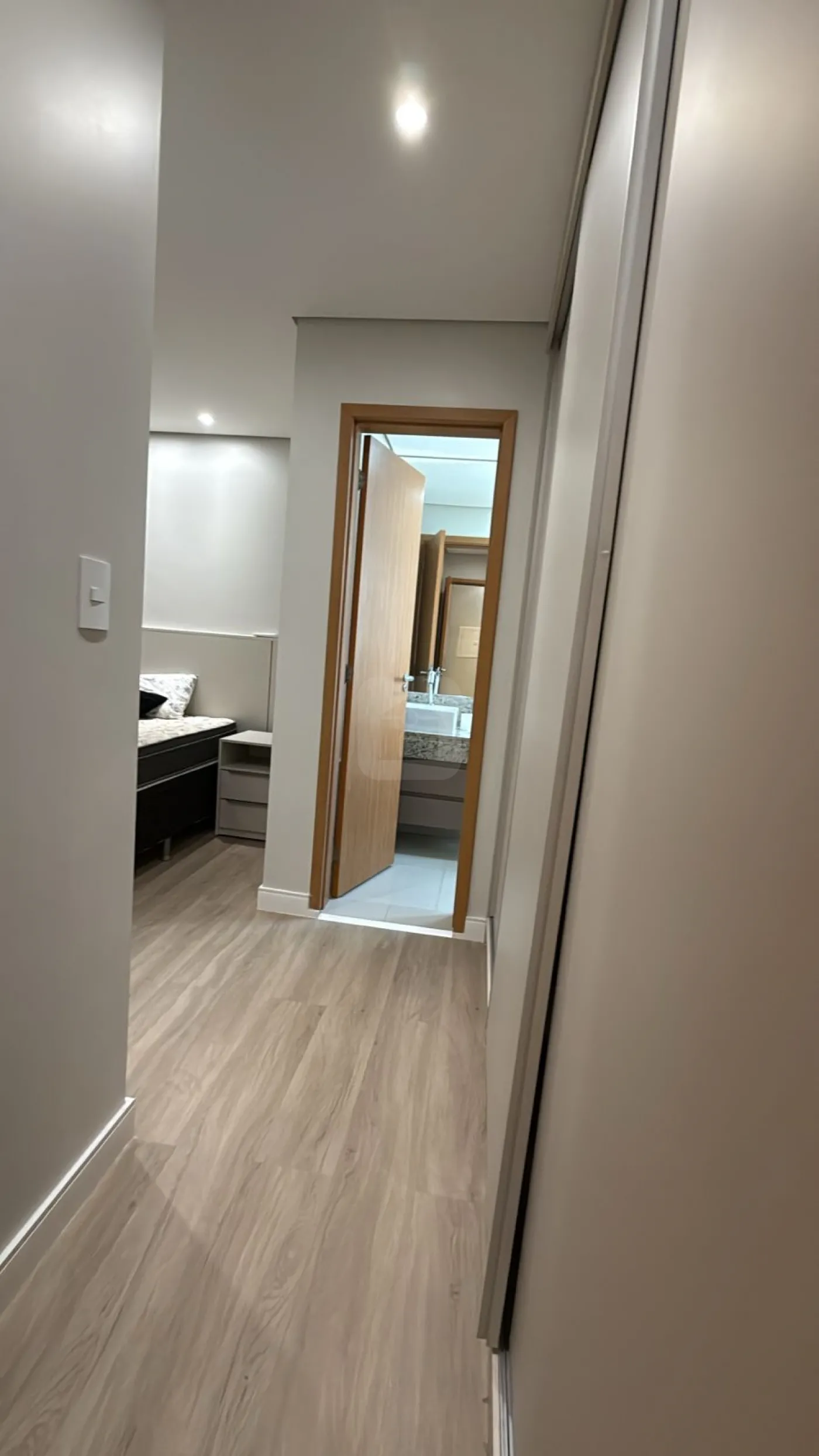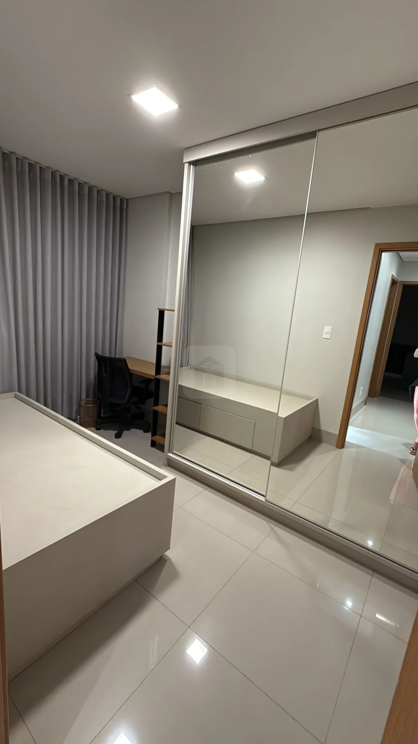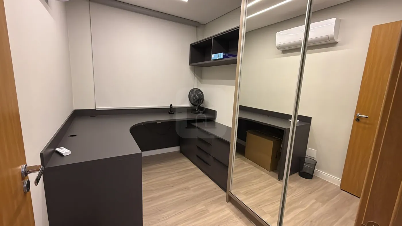 Suíte com armários embutidos e ar-condicionado