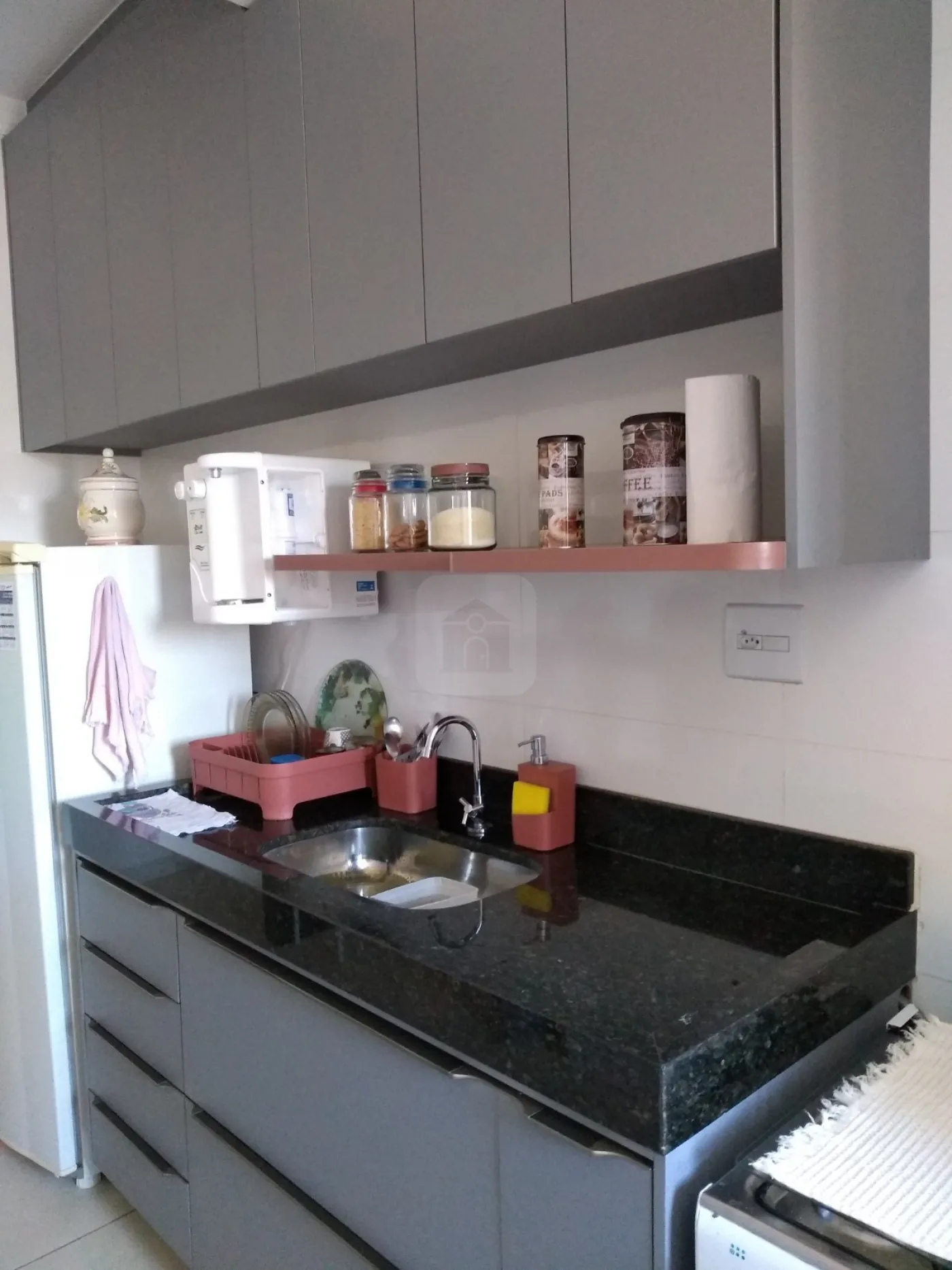 Apartamento com sala, sacada com churrasqueira, 02 quartos, banheiro com box e armário, cozinha planejada, lavanderia com armários, 1 vaga de garagem, contém escada.