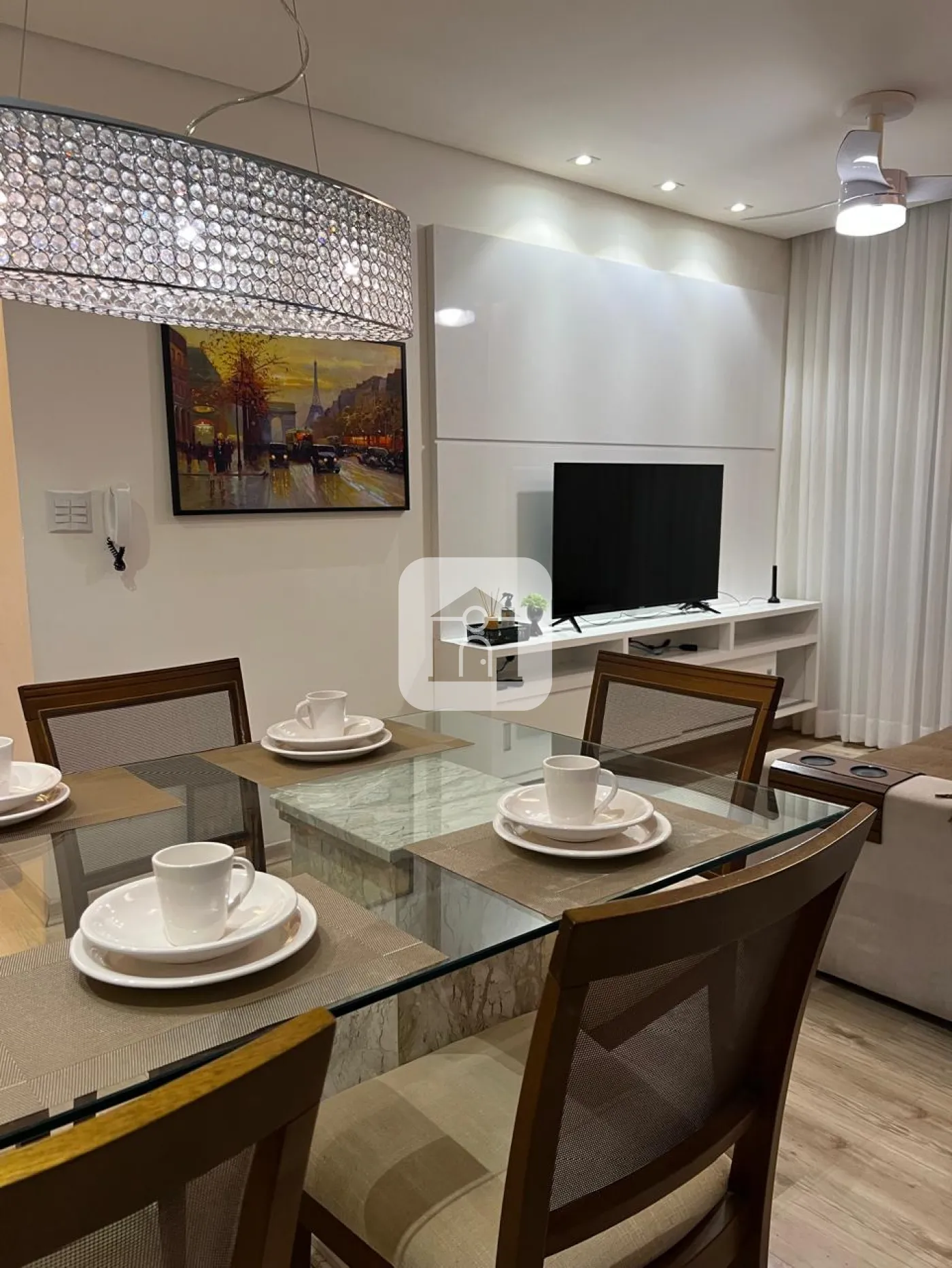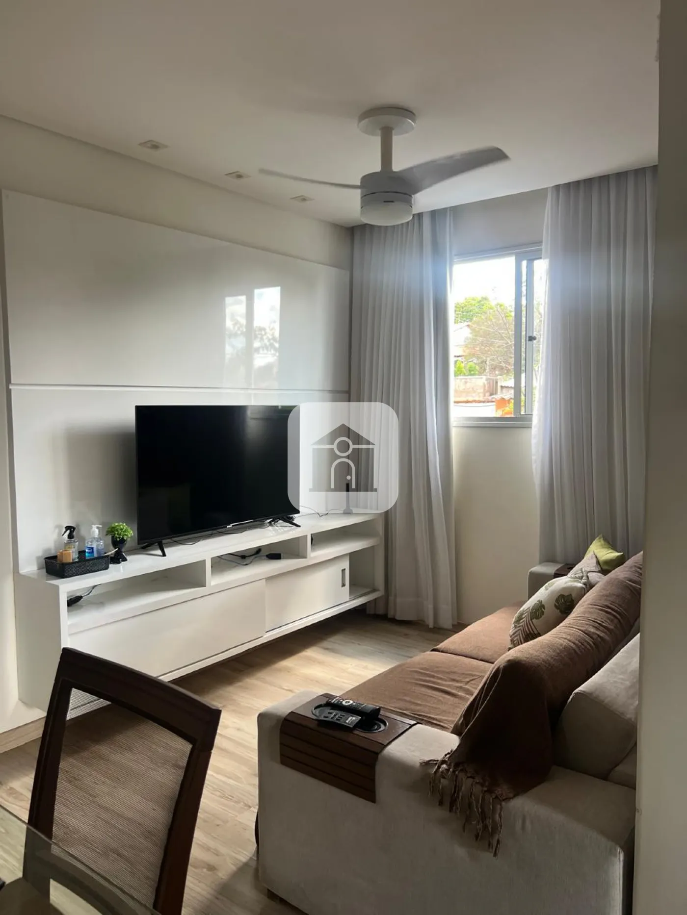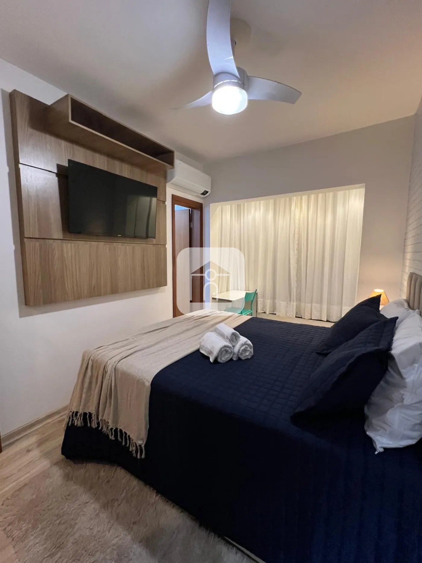 Apartamento todo montado com armários de qualidade, ar condicionado na suíte, ventiladores no quarto e sala.