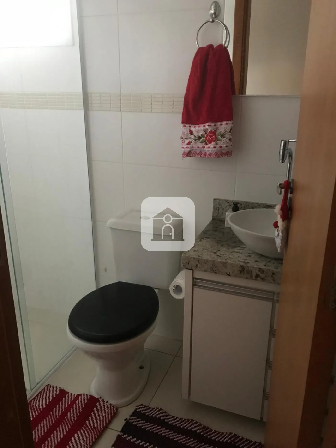 Banheiro com armário e blindex;