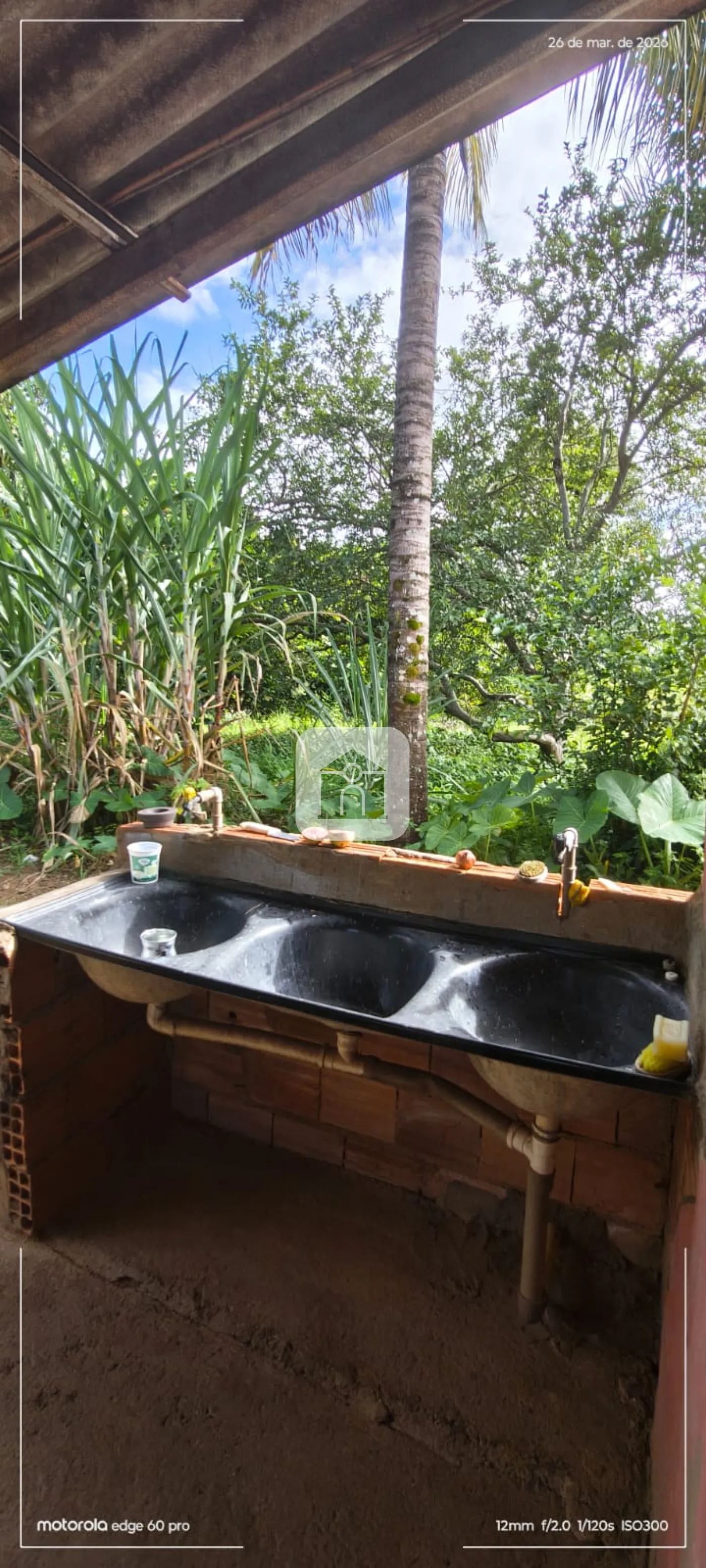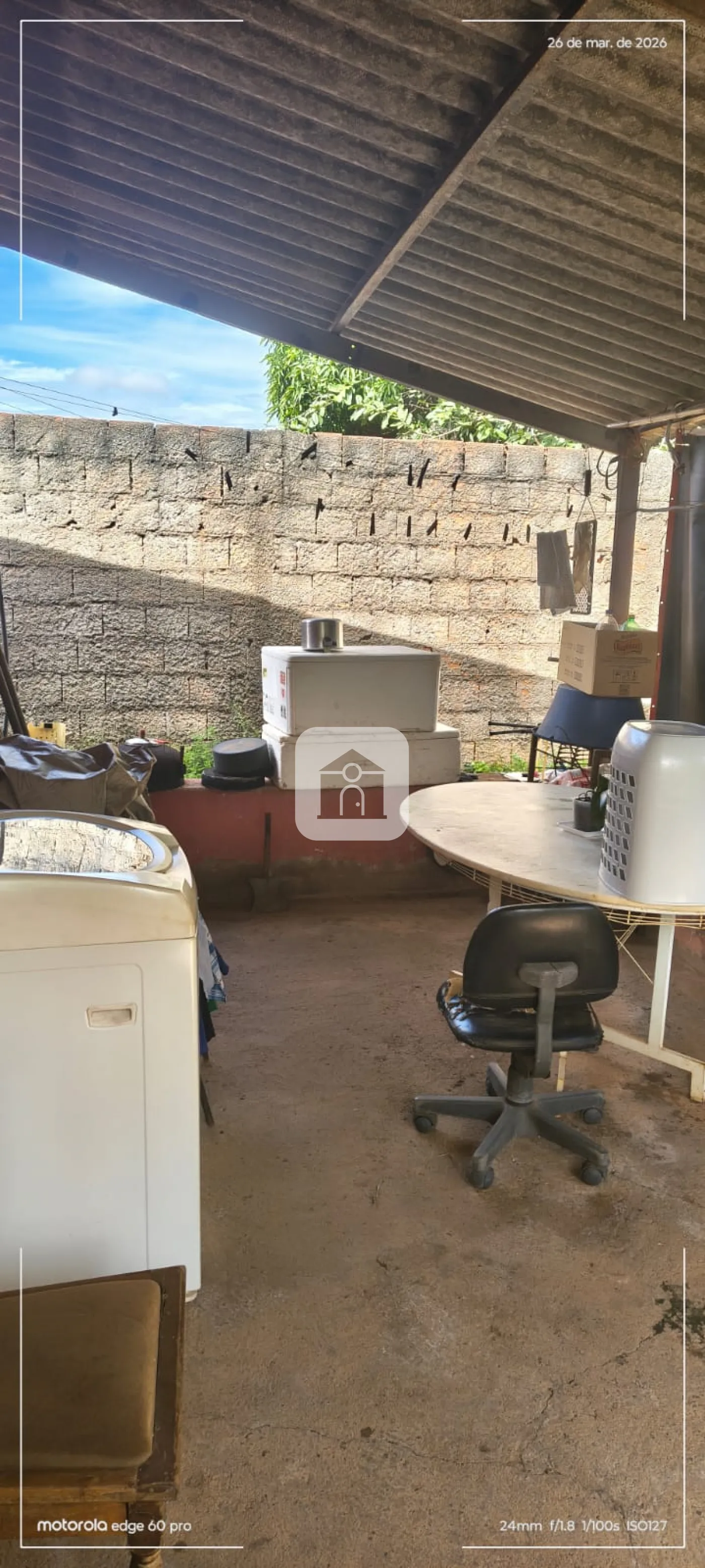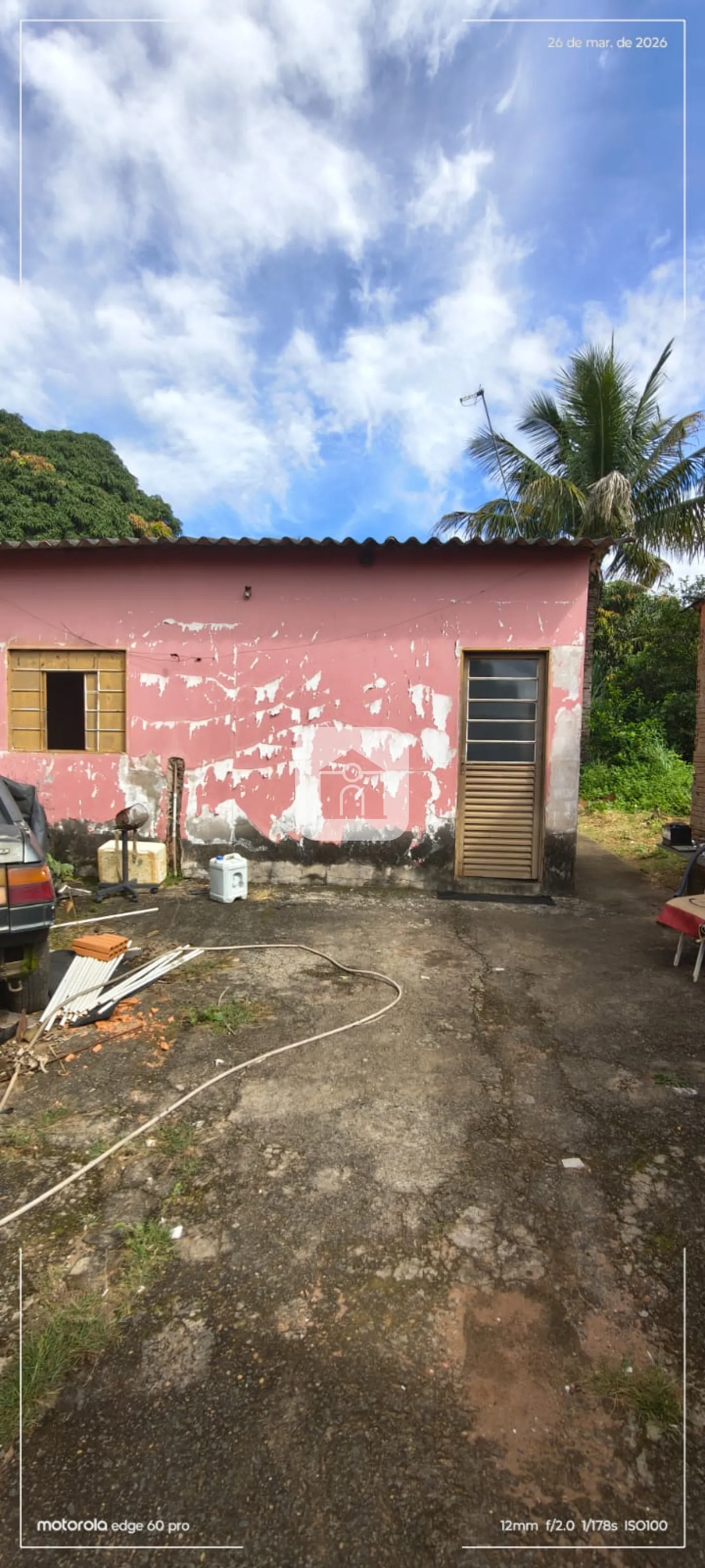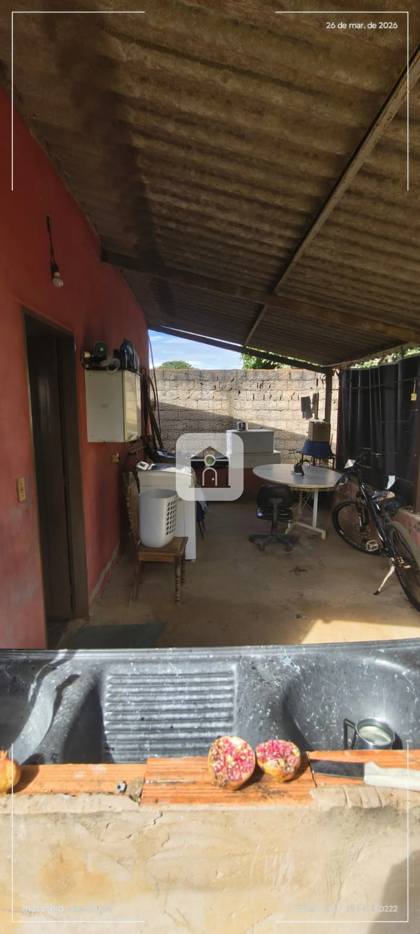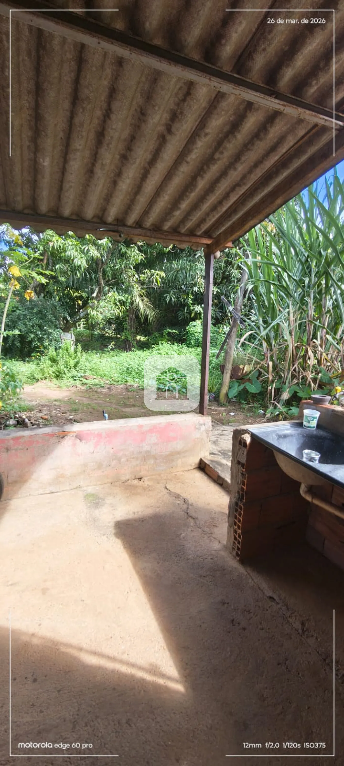 Uma casa de 03 cômodos e uma varanda nos fundos;