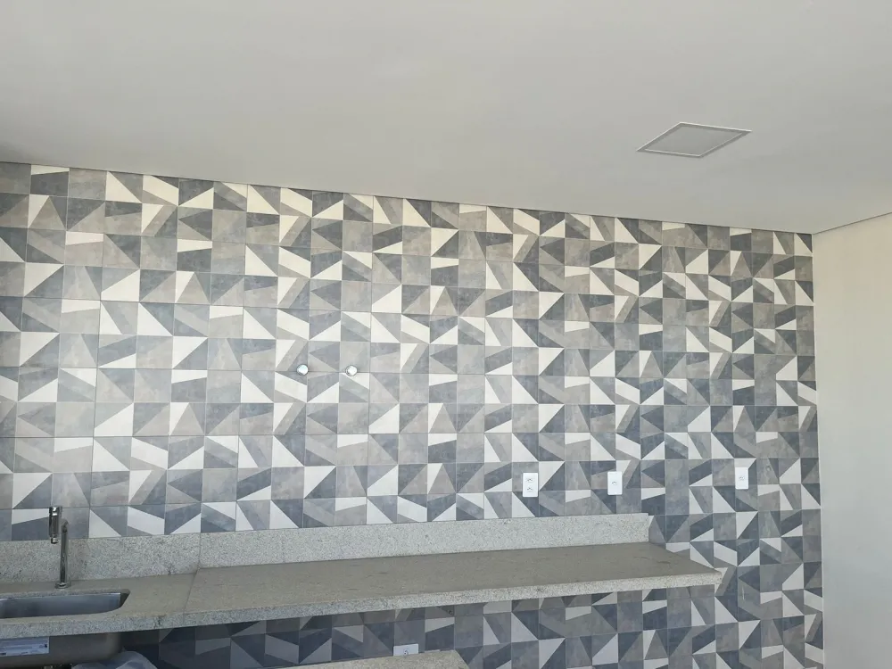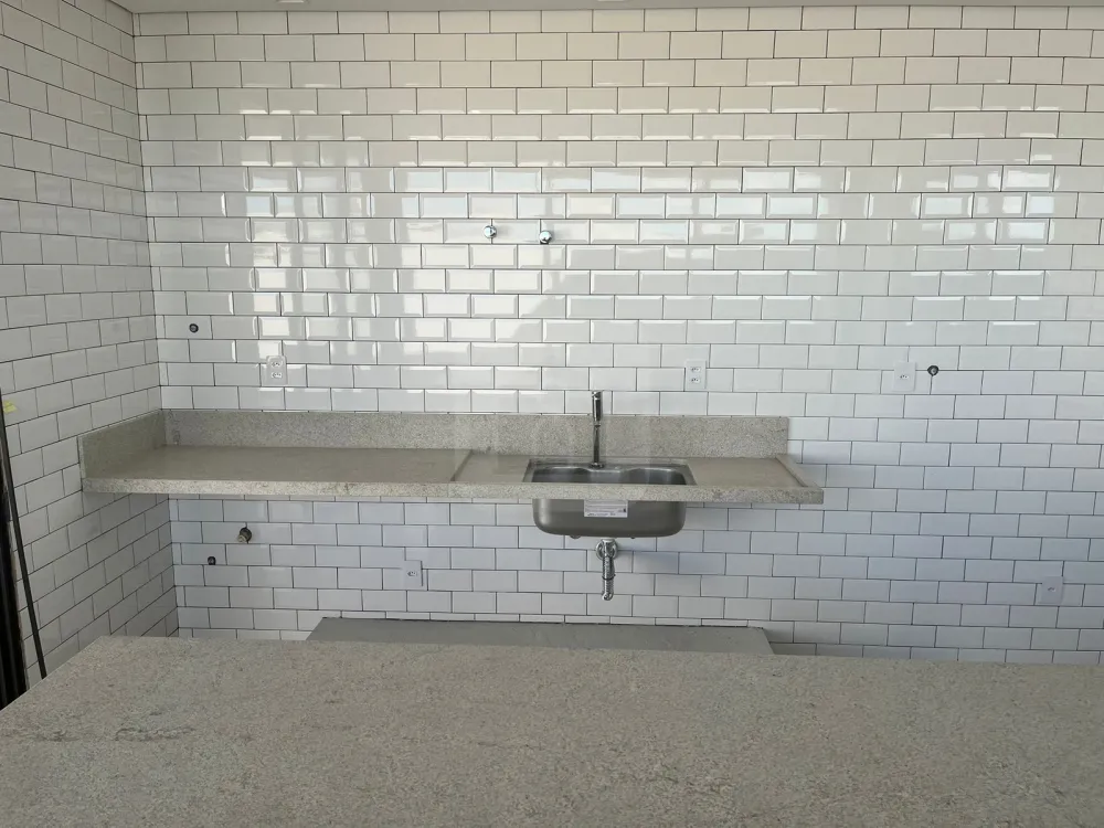 Varanda gourmet com churrasqueira.