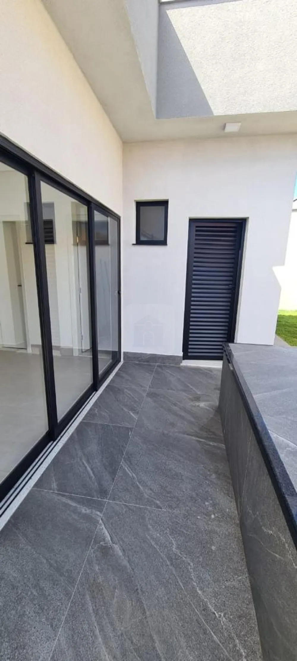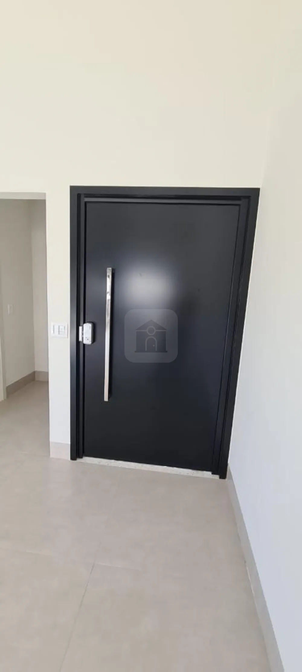Porta de entrada principal em ACM com fechadura digital Intelbras.