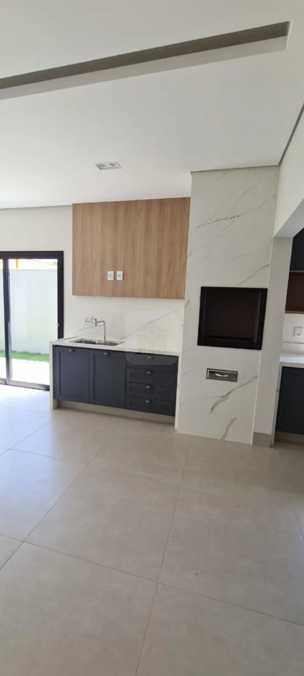Todas as bancadas, Churrasqueira e ilha em Porcelanato Statuário Polido 1,20x1,20m.