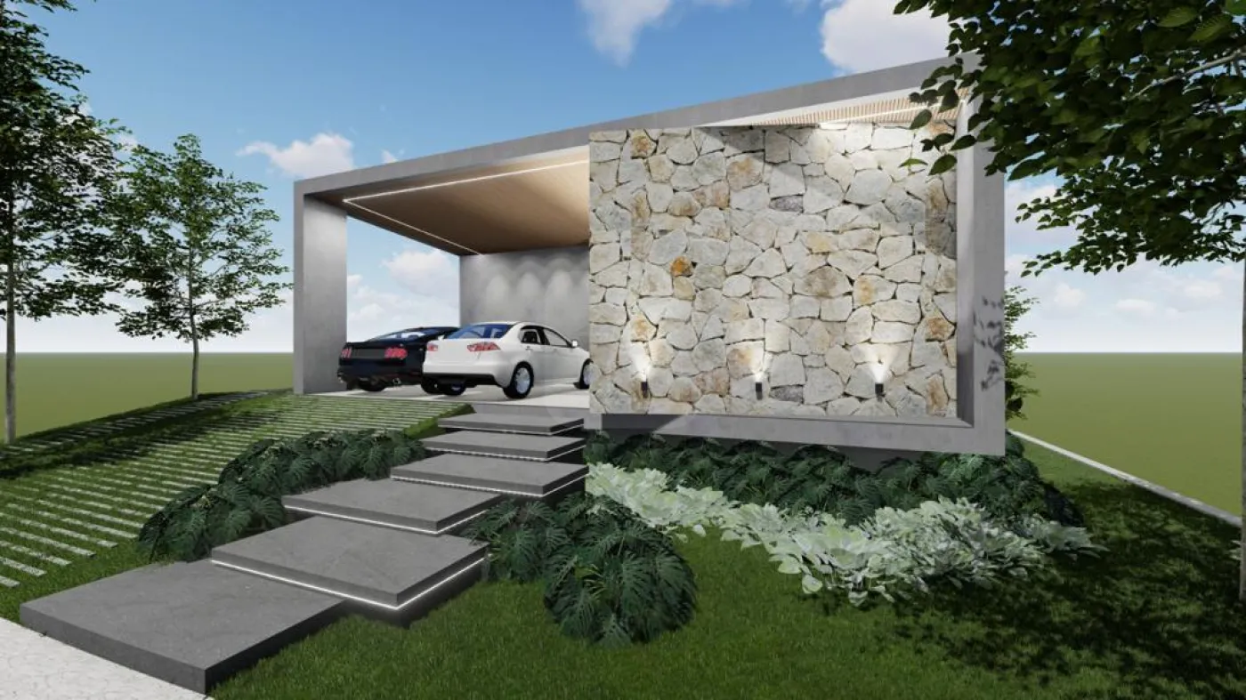 Projeto com 302,79m² de área coberta de construção,