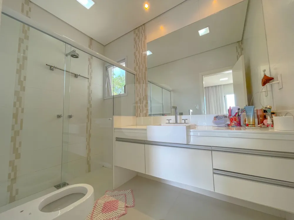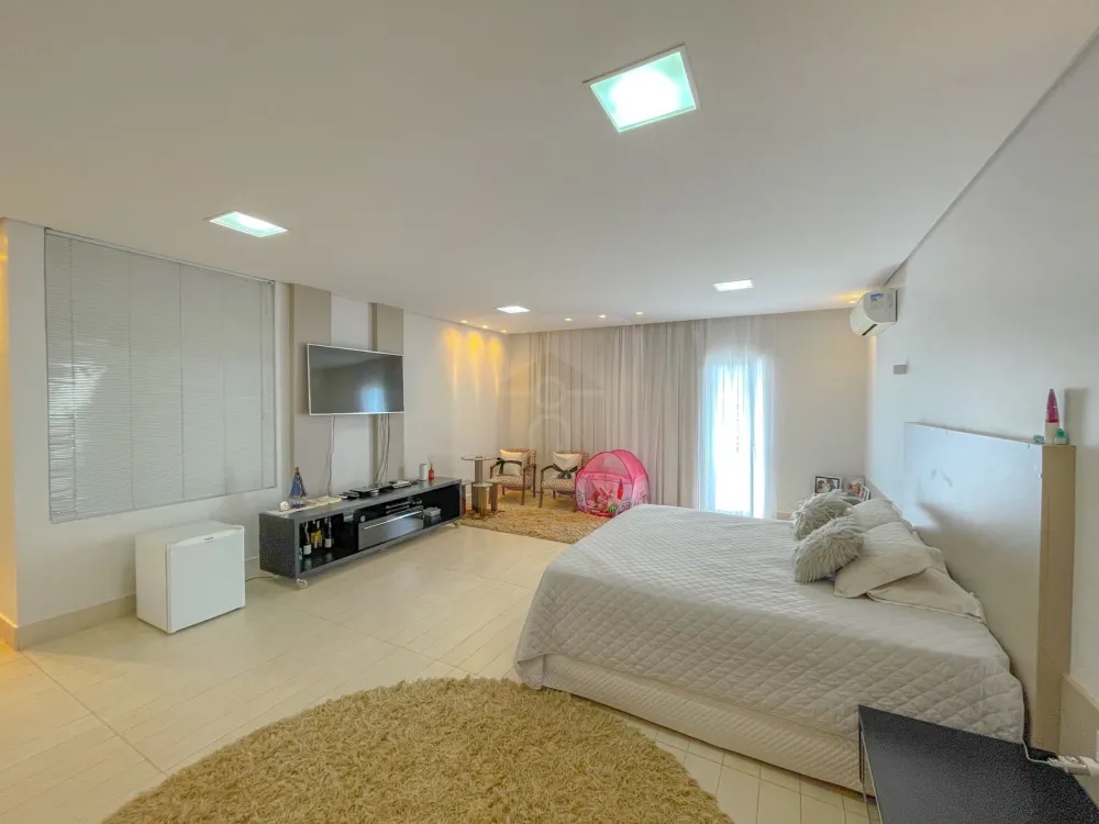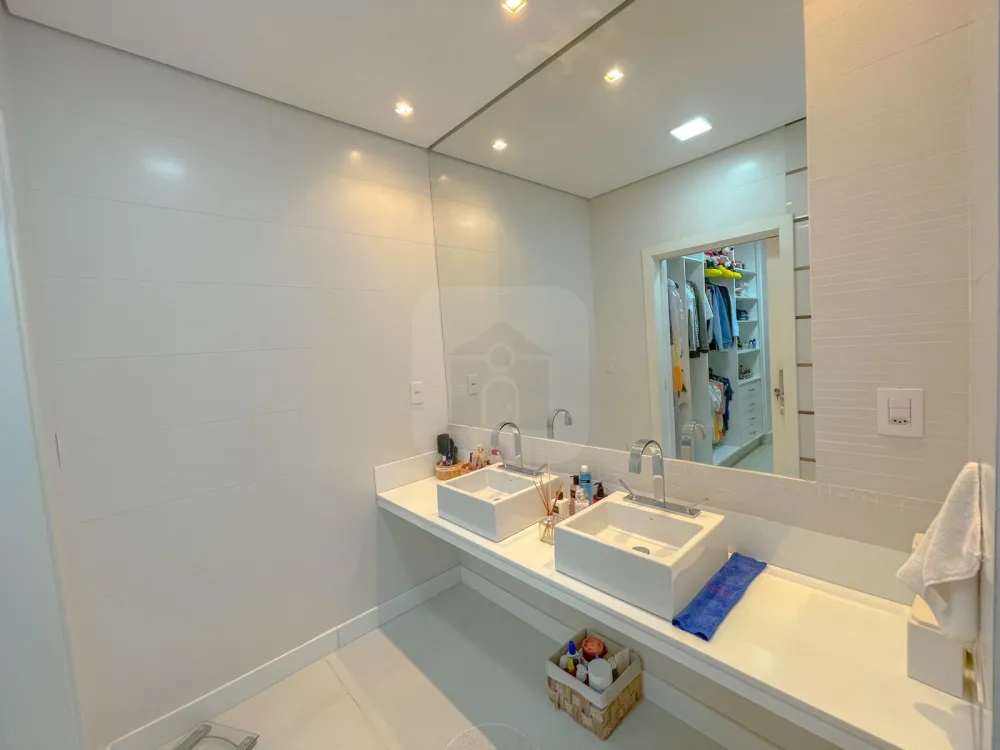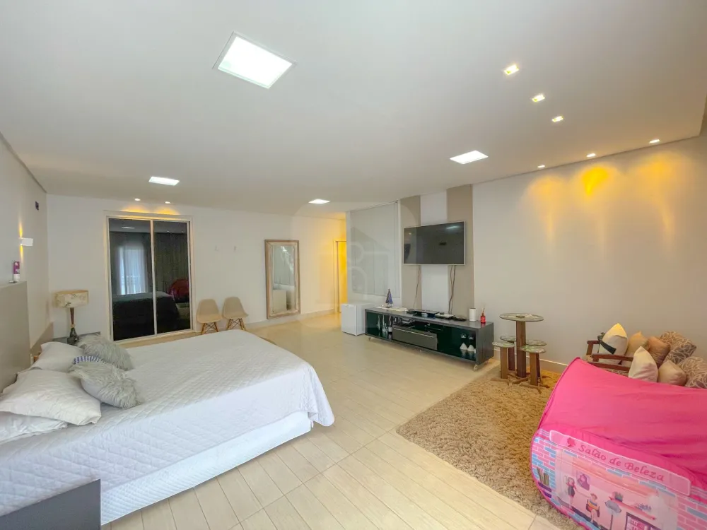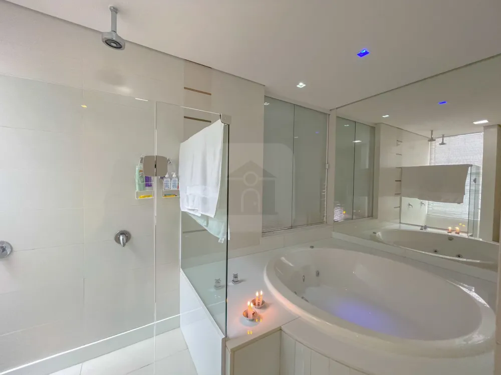 Suíte principal tem tamanho extra, closet amplo, banheiro com hidromassagem cubas e duchas duplas e sacada bem ampla.