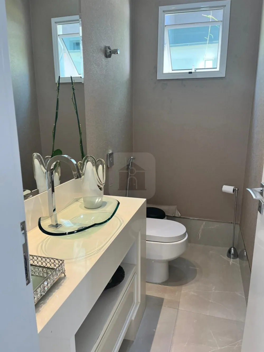 - Janelas de alumínio com persianas elétricas nos quartos, home Theater e escritório.