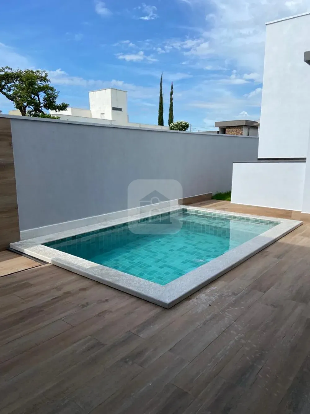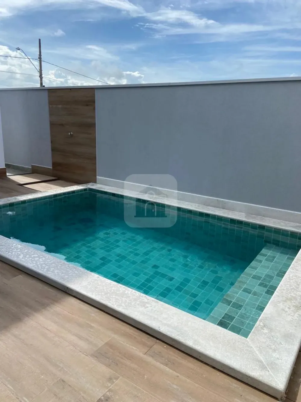 Piscina aquecida com iluminação.