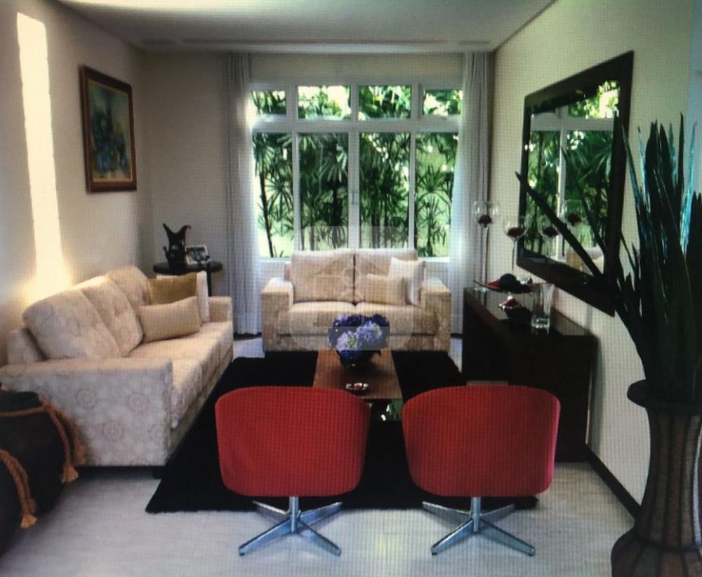 1º piso: Garagem para cinco carros, sala em 4 ambientes, lavabo, jardim de inverno com aquário, escritório, cozinha com armário embutido, área de serviço, despensa, quarto de serviço, sala de ginastica, sauna, piscina com cascata, churrasqueira, banheiro externo, ducha.