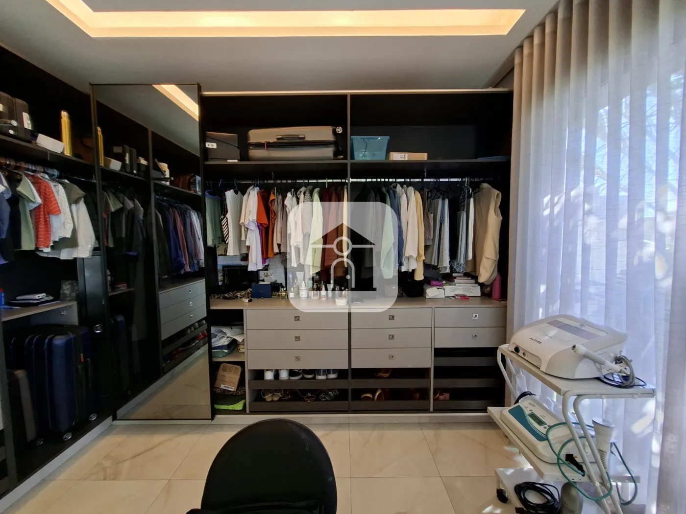 A garagem comporta até três carros. As suítes, a cozinha e o subsolo são climatizados.