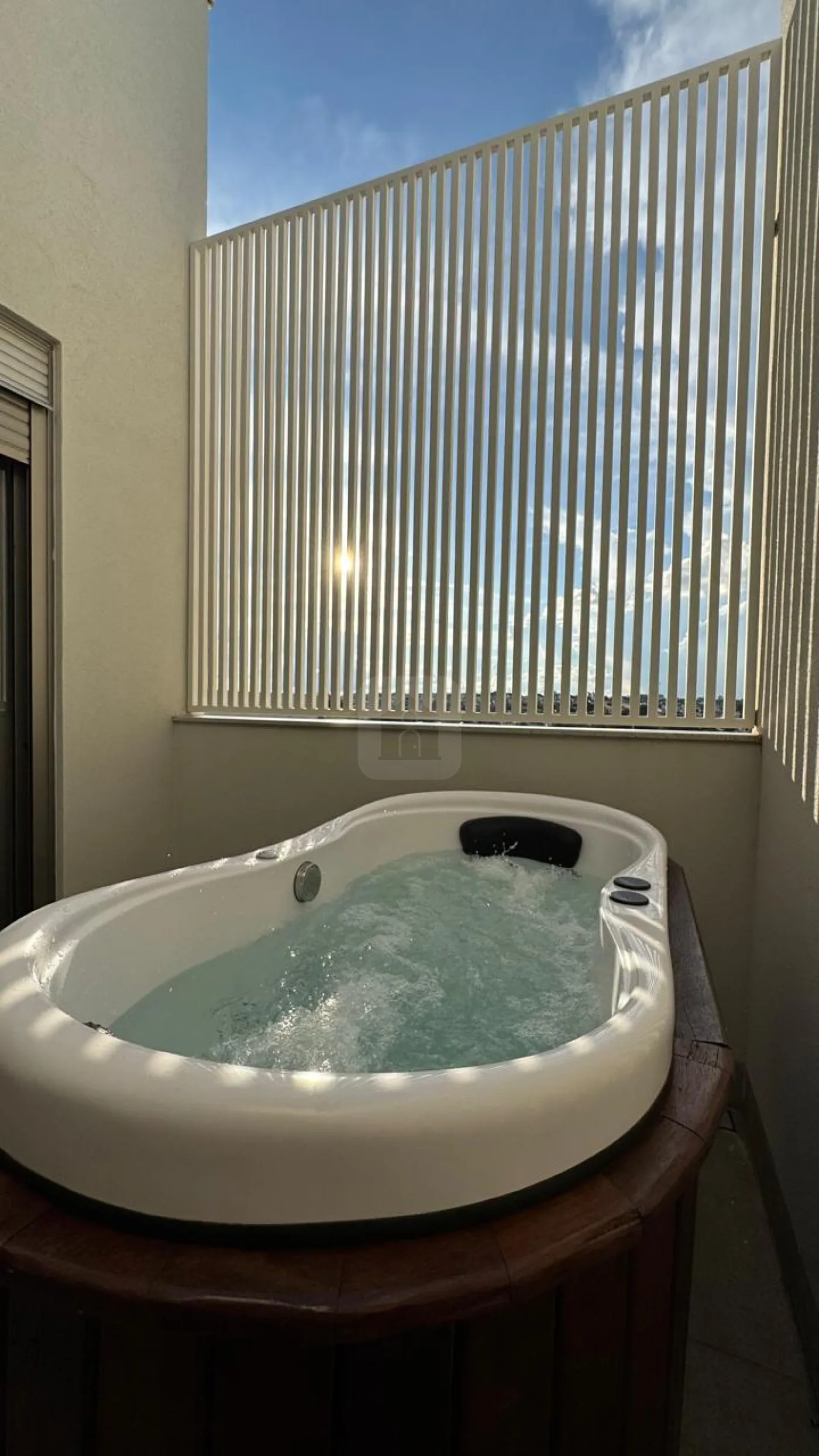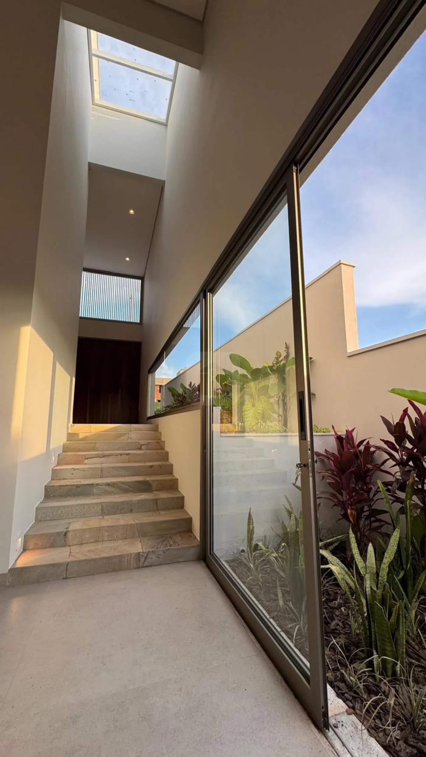 3 suítes no pavimento superior, todas com sacada, sendo que a suíte master, com mais de 42m², conta com um terraço exclusivo com ofurô. As outras duas suítes contam com banheiro com zenital de blindex com abertura e fechamento automático nos boxes.
