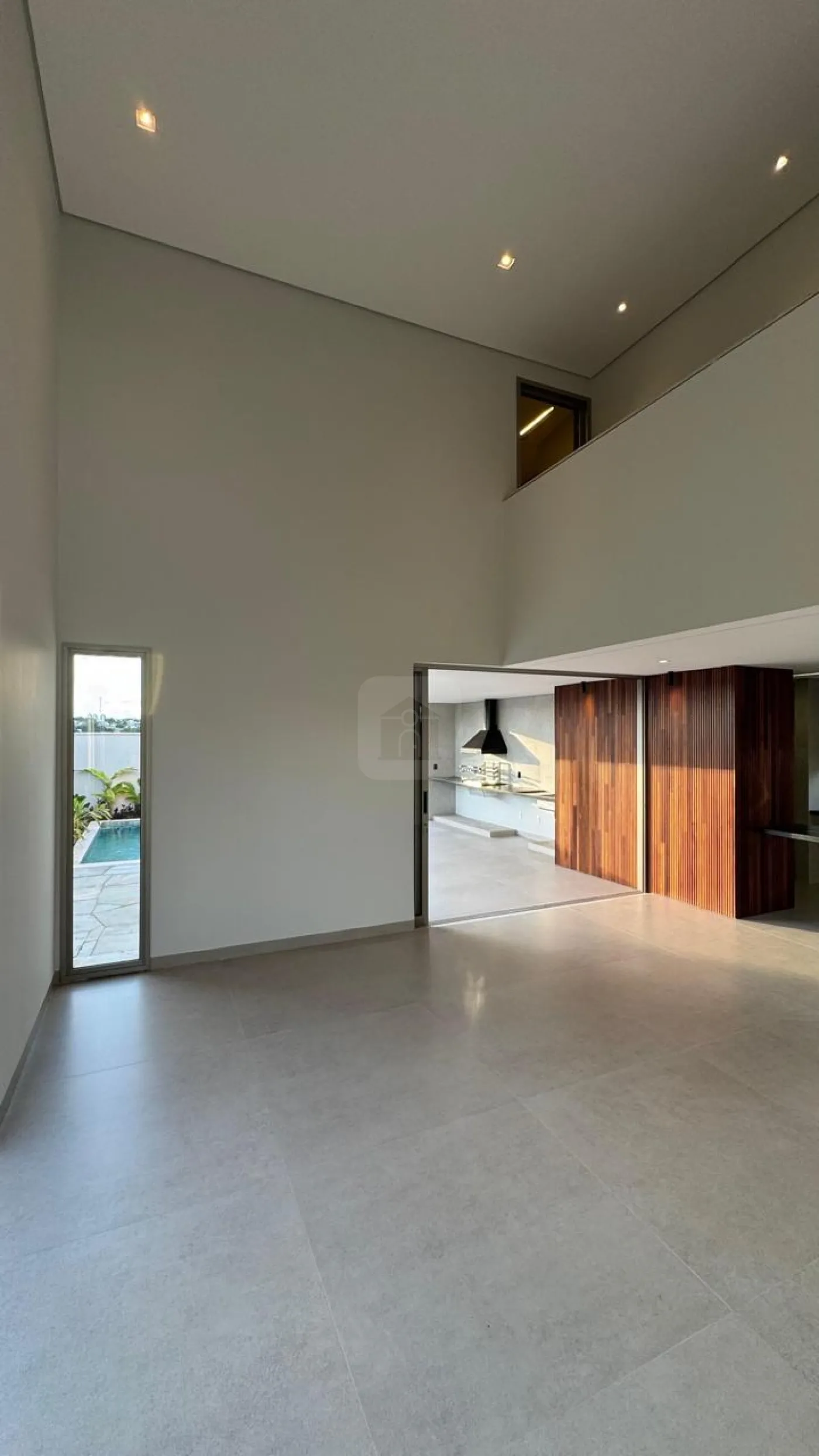 Sala de estar, cozinha e área gourmet integradas