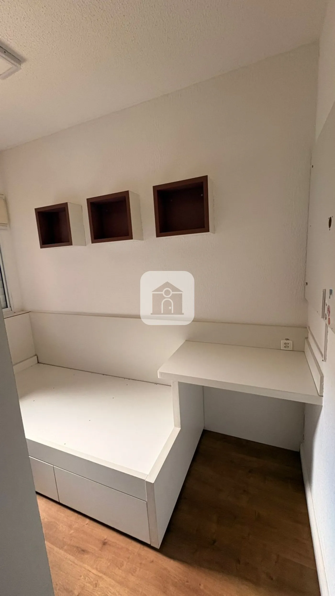 Piso laminado na sala e nos três quartos.