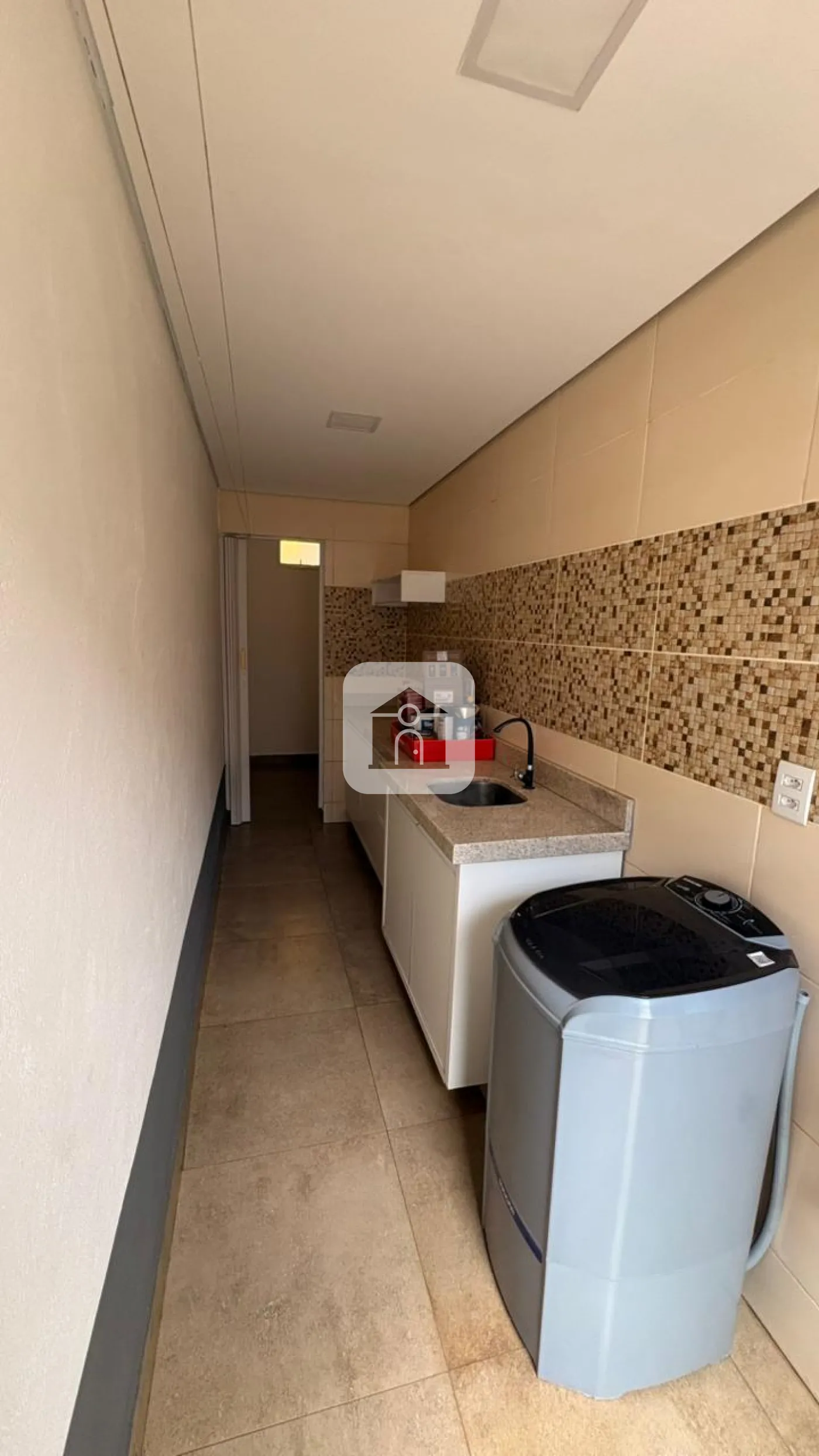 Lavanderia coberta com armário planejado;