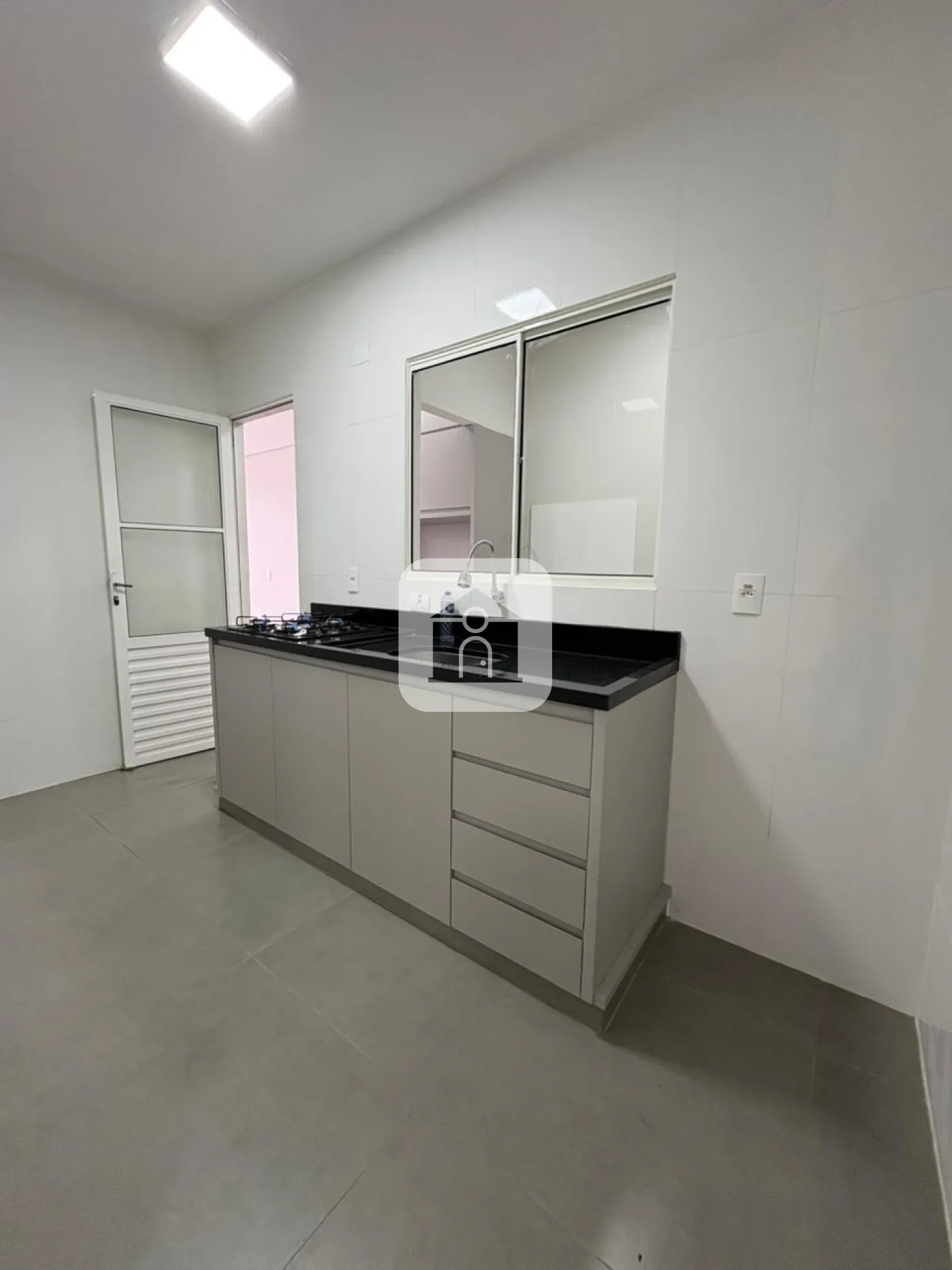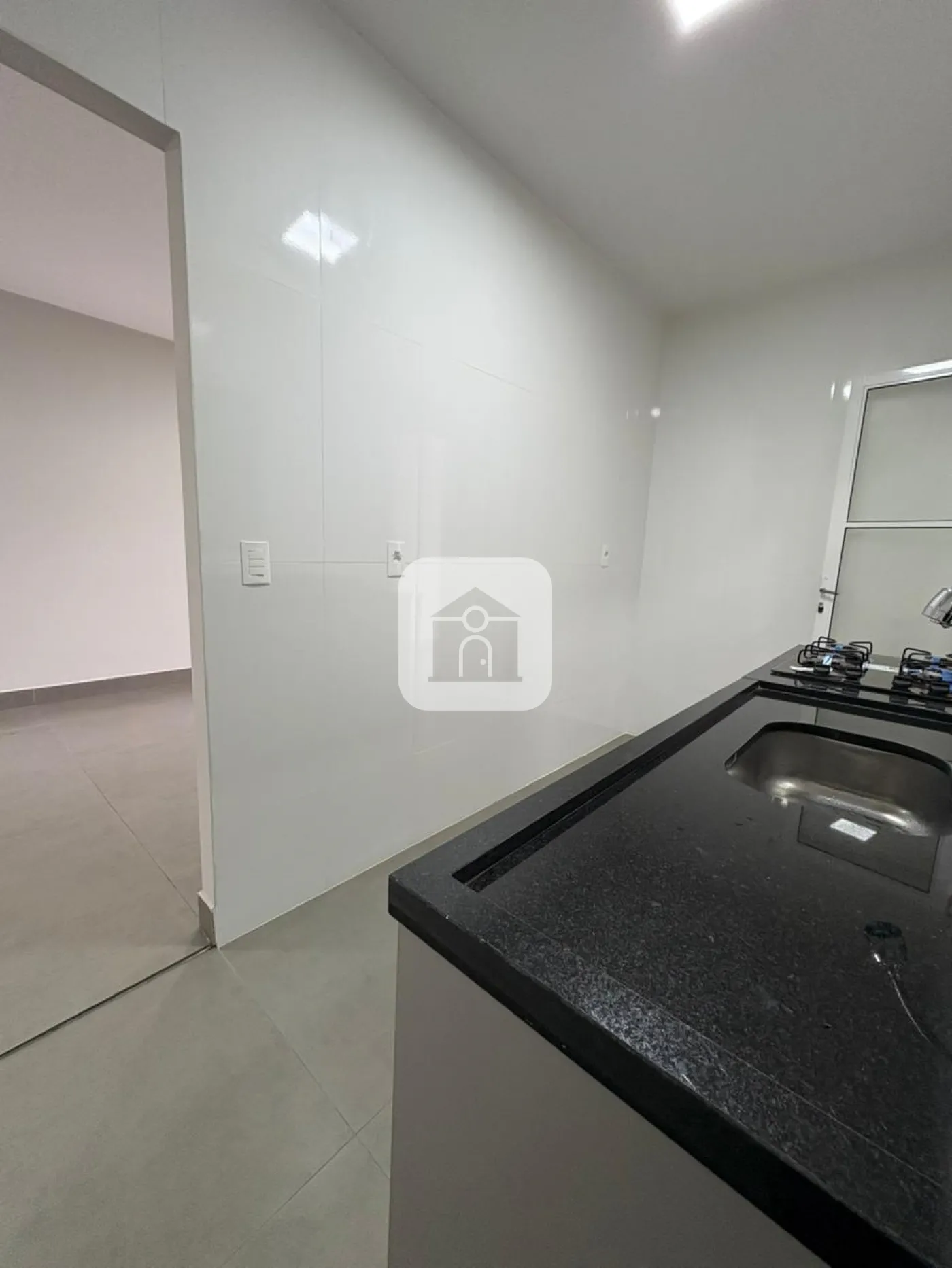 - Cozinha toda revestida em porcelanato branco 39x 75 cm, bancada em Granito Preto São Gabriel, com planejados e cooktop novos;