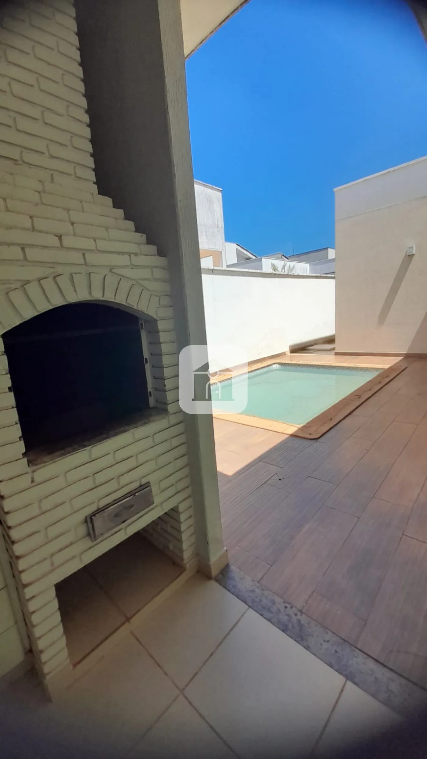 Área Gourmet com churrasqueira, piscina com aquecimento e banheiro externo.