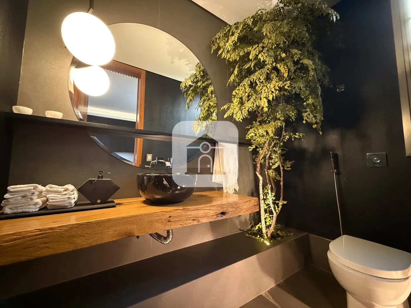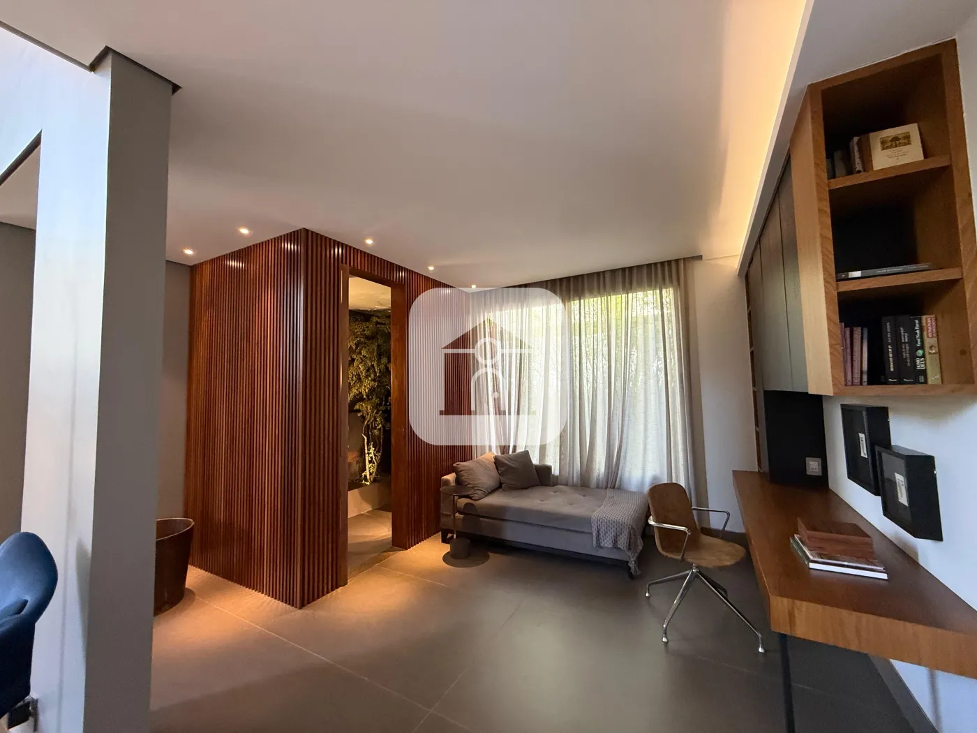 Escritório integrado, sala de estar e lavabo social