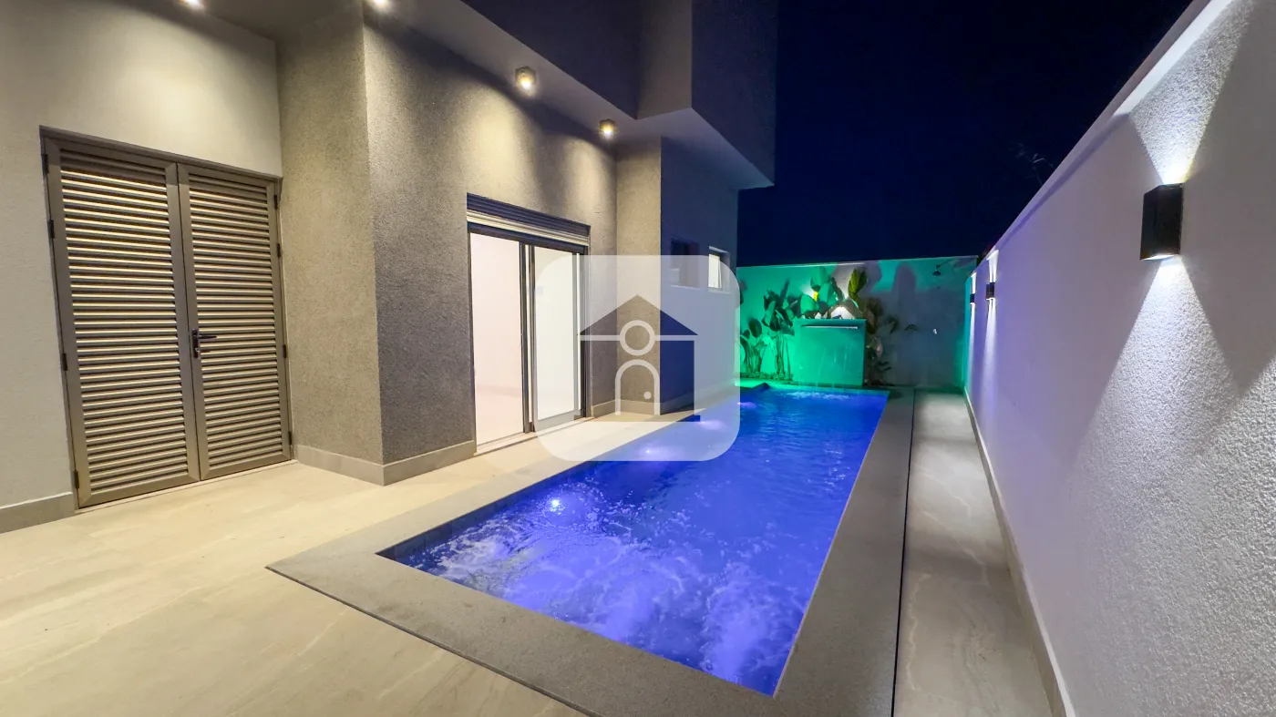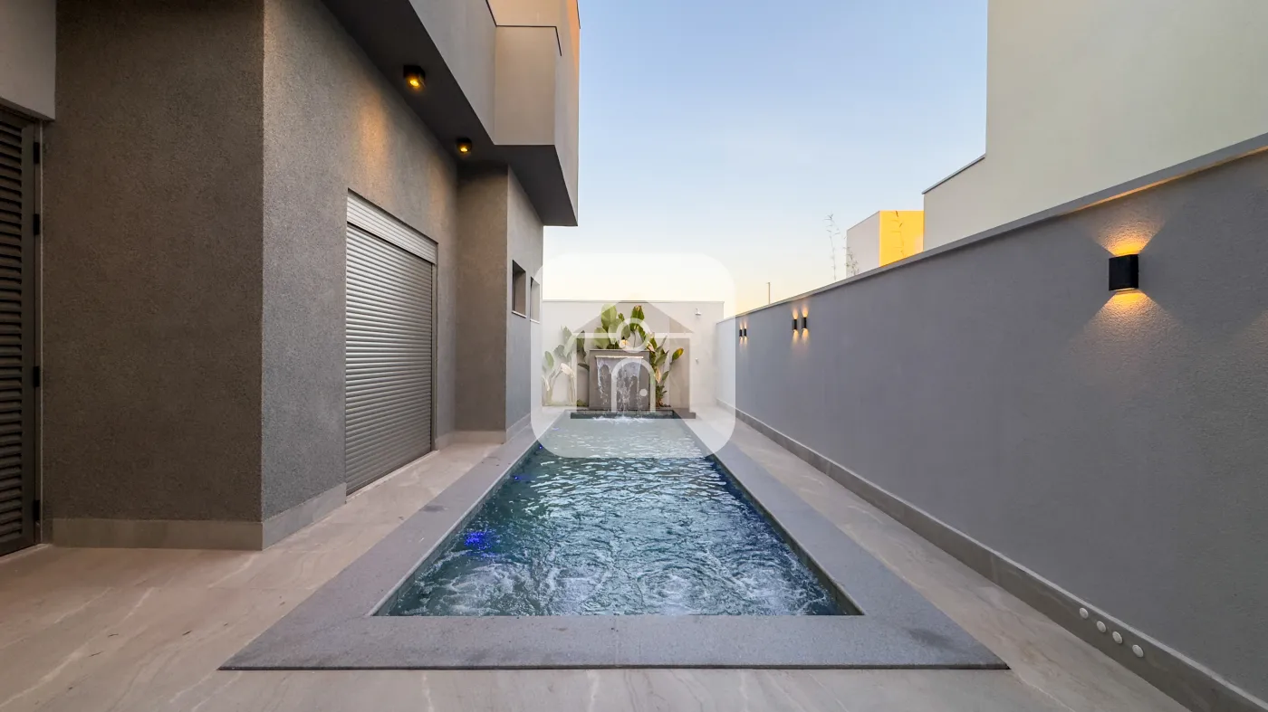 piscina com cascata, hidro, iluminação e aquecimento solar