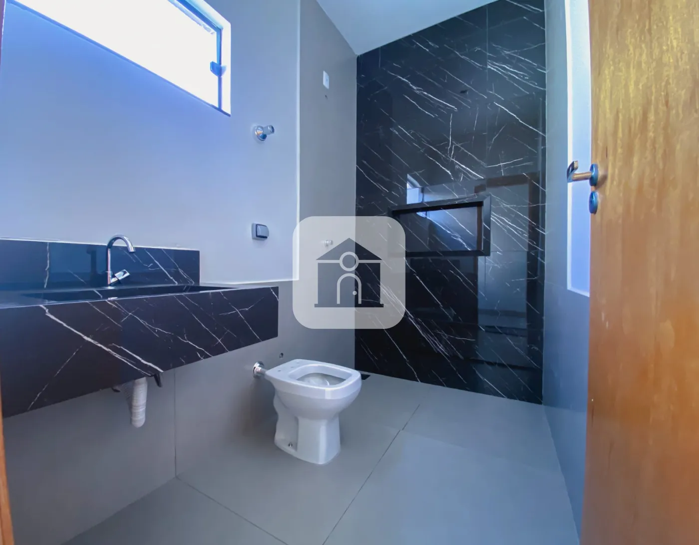 * Banheiro social com Cuba esculpida, nicho instalado e bacia sanitária celite.
